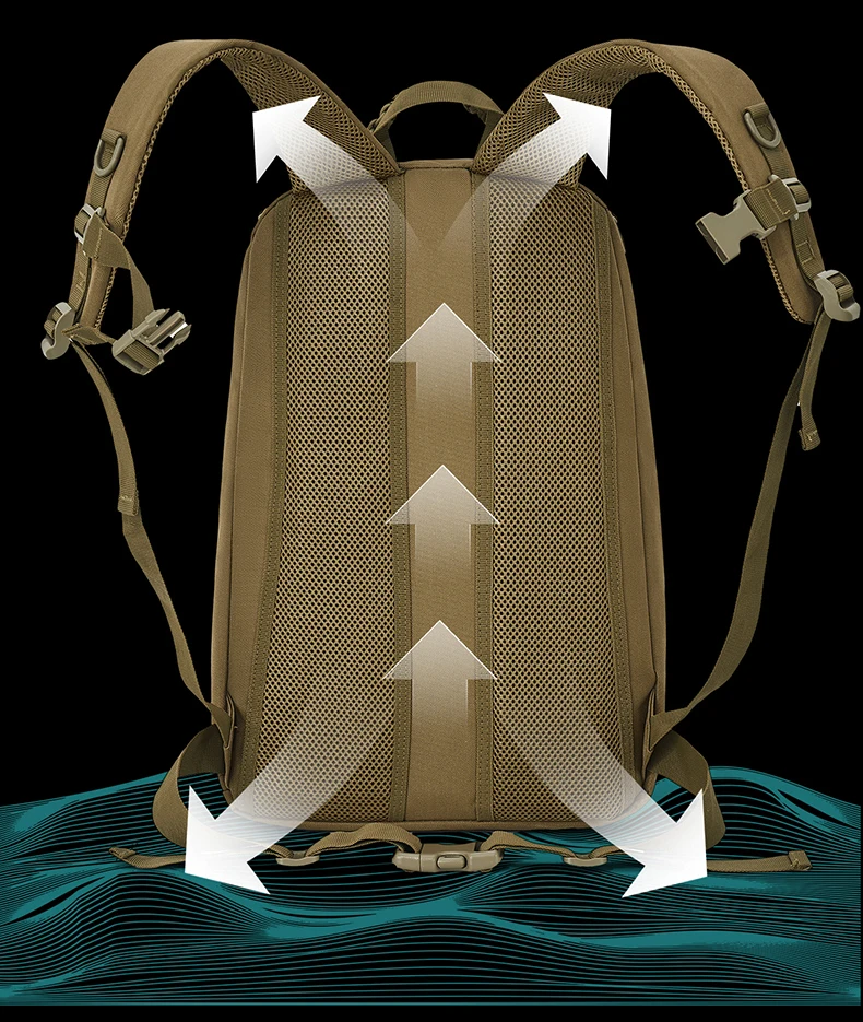 3.Sistema de inversión de aire en la espalda, transpirable y que expulsa el sudor.