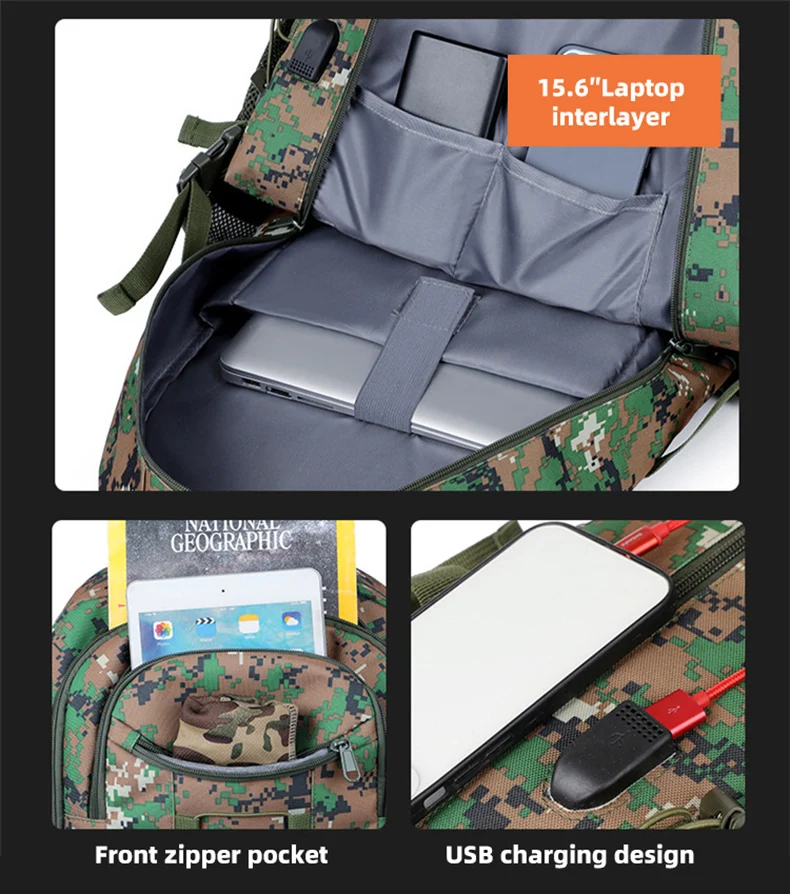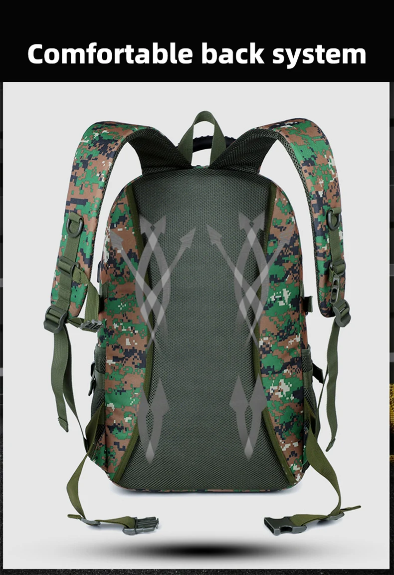 Mochila táctica grande USB para escalada, senderismo al aire libre, pesca, Camping, ciclismo, bolsa portátil para deportes, viaje, mochila de equipaje para ordenador portátil