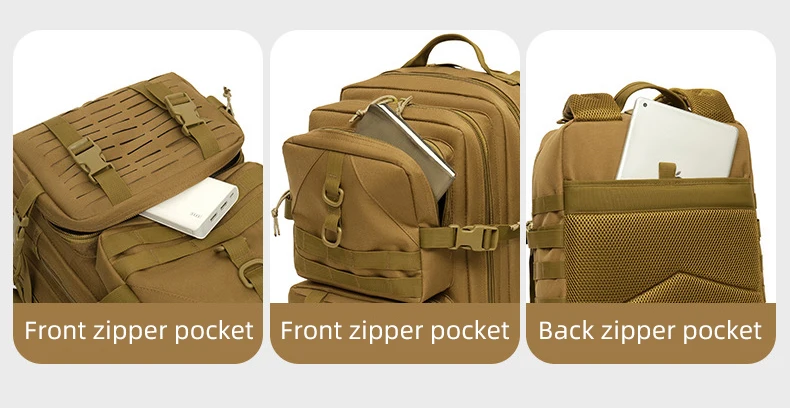 3.El cuerpo de su periódico establece una serie de bolsillos laterales con cremallera y almacenamiento de zonificación