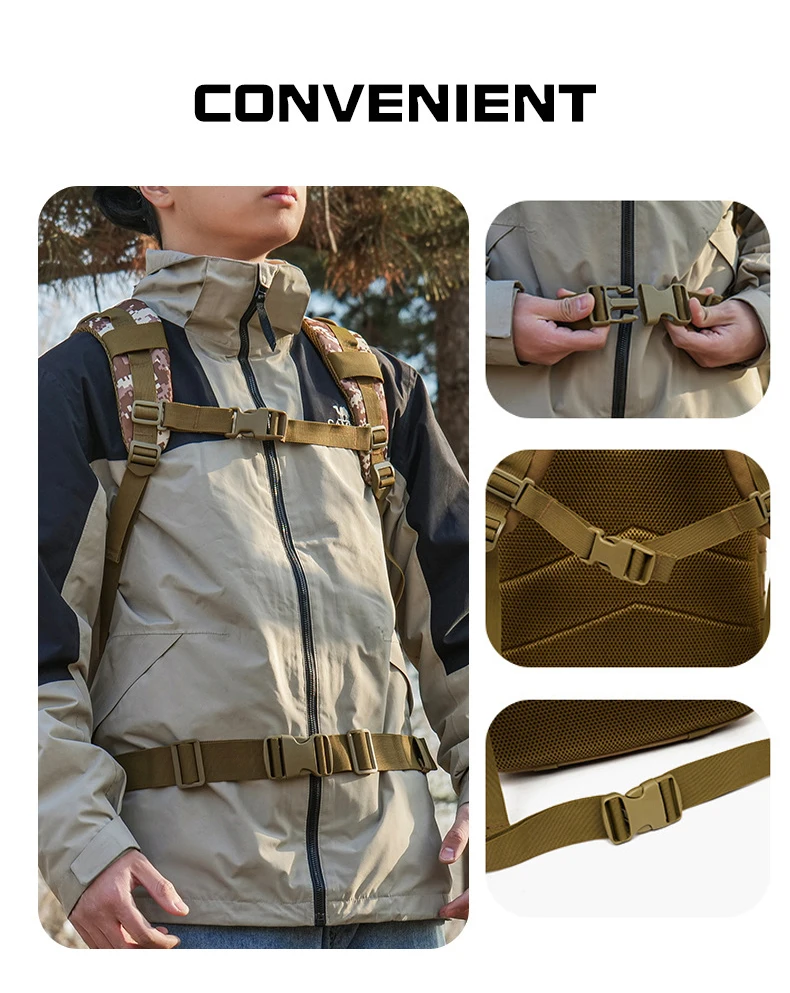 5.Diseño de correa para el hombro antidesprendimiento, hebilla portátil, cinturón fijo frontal en el pecho y la cintura, la parte superior sólida del cuerpo no tiembla
