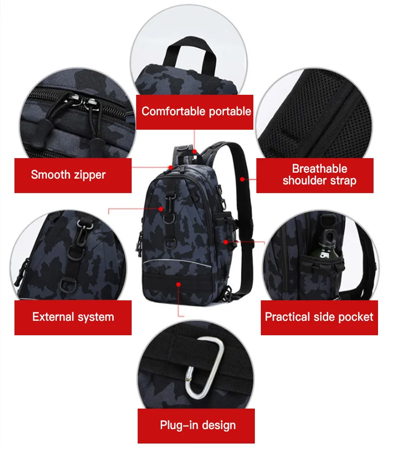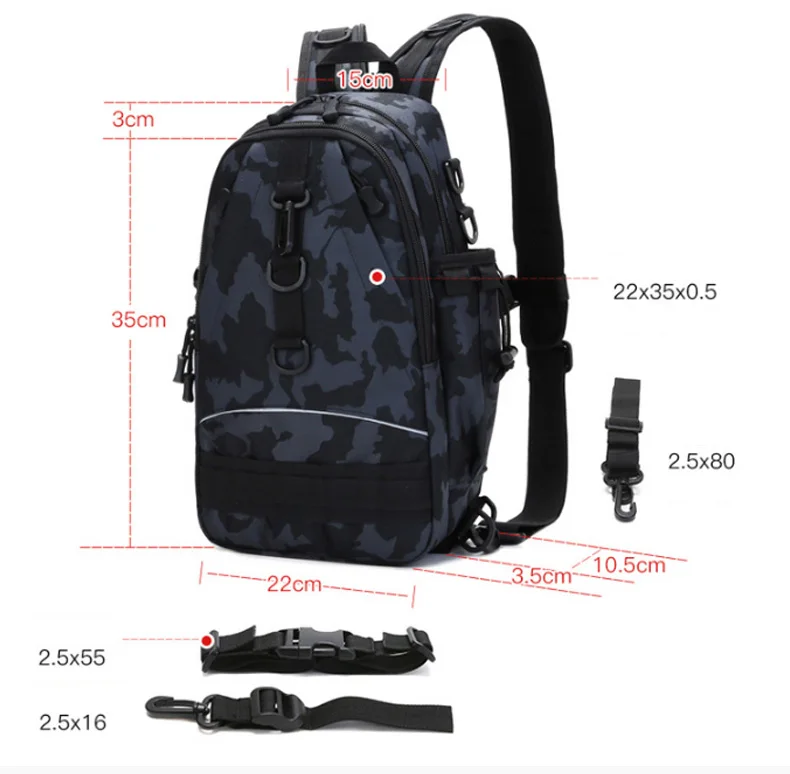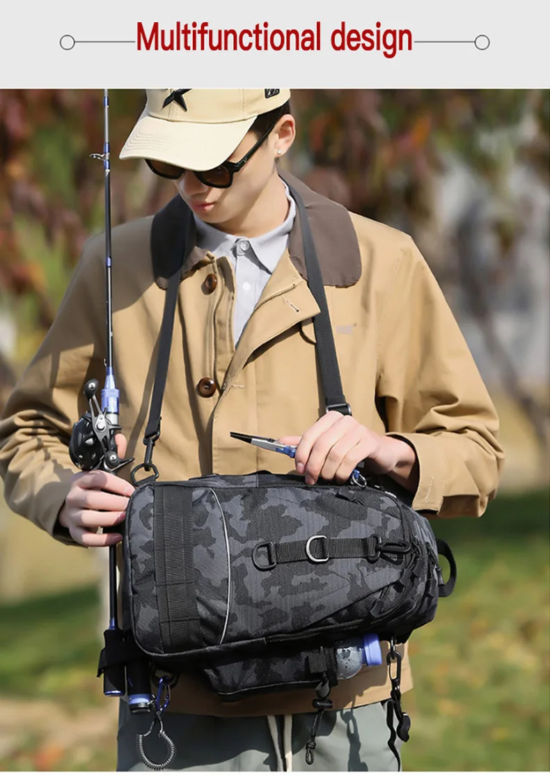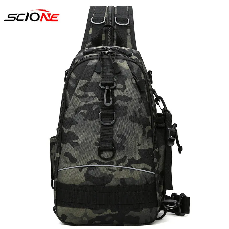 Mochila táctica multiusos para pesca, bolsa de hombro cruzada, impermeable, para senderismo al aire libre, X435G
