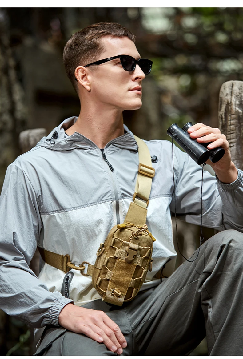 Bolsa táctica de pesca con honda, gran capacidad, ligera, para senderismo, escalada, ciclismo, pecho, bolsa cruzada ajustable para exteriores