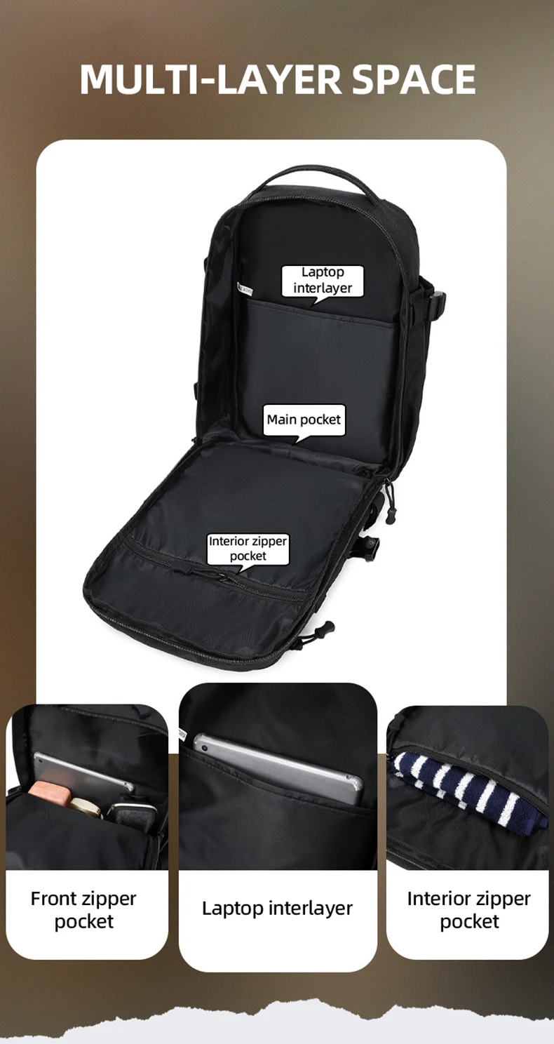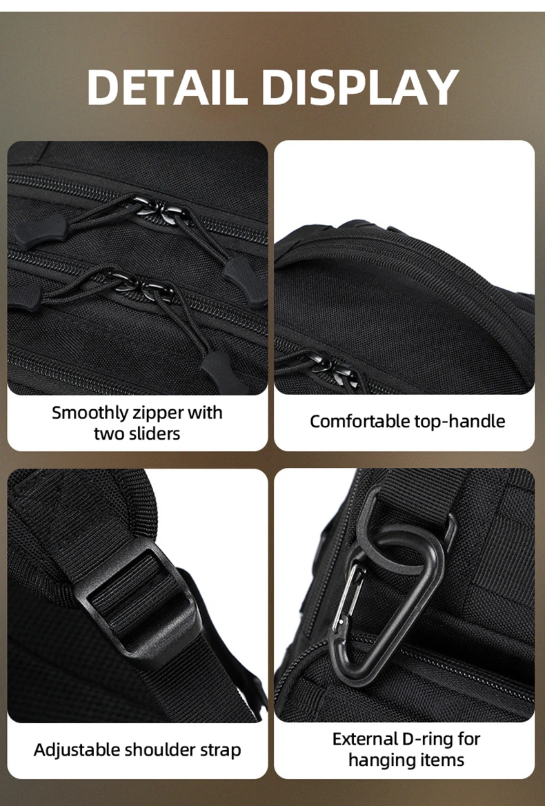 2.Múltiples bolsillos con cremallera en el cuerpo de la bolsa, bolsillos frontales con cremallera, almacenamiento por zonas, fácil de usar