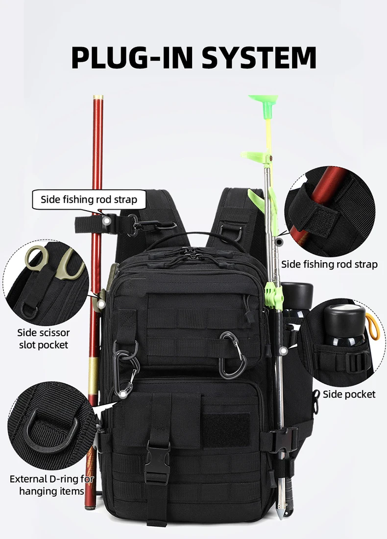 Mochila de pesca táctica con soportes para cañas, viajes al aire libre, escalada, senderismo, ciclismo, bolsa de pecho, señuelo Molle, mochila grande para acampar