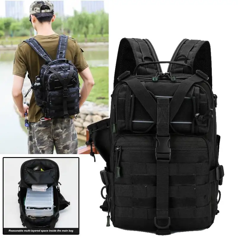 Cajas de pesca, mochila multifunción para aparejos de pesca, bolsa para caña, deportes al aire libre, pesca, hombro, bolsa táctica Molle