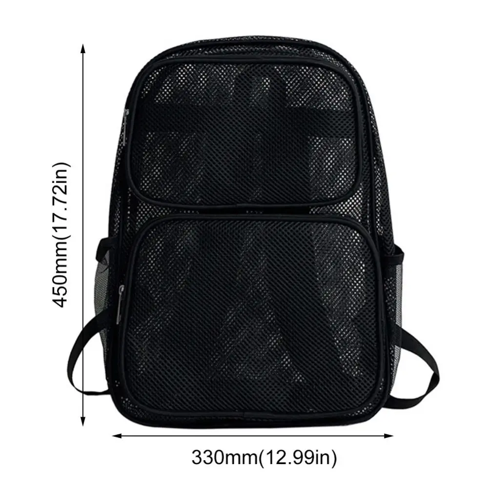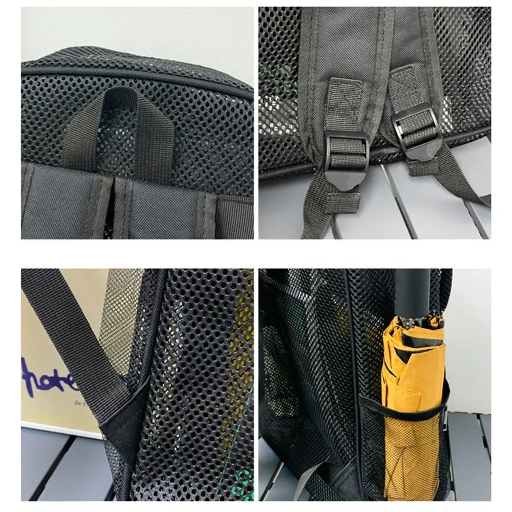 Durable and Long-Lasting: Crafted from premium nylon mesh, our see through mesh backpack withstands the rigors of daily use. The robust material is resistant to tearing and wear, ensuring your backpack remains a reliable accessory for your travel, sports, and fitness needs over time.