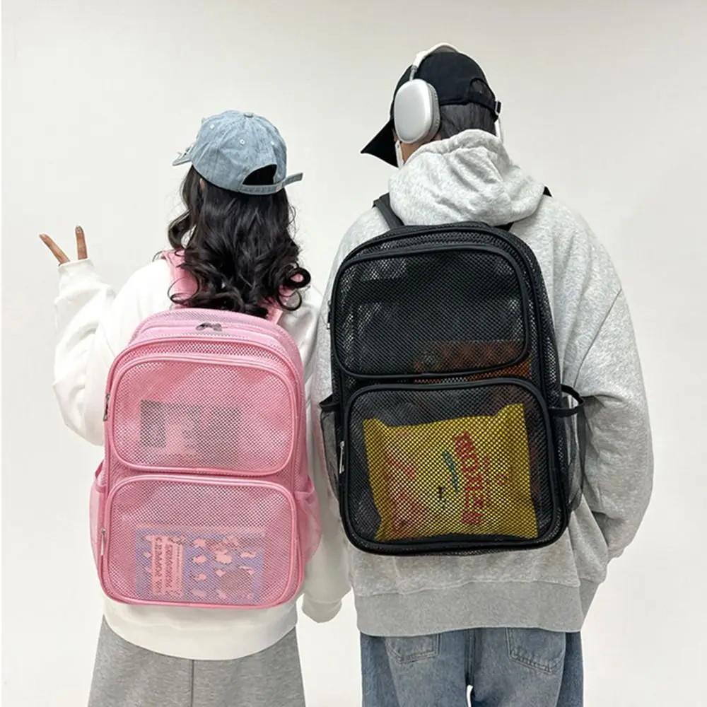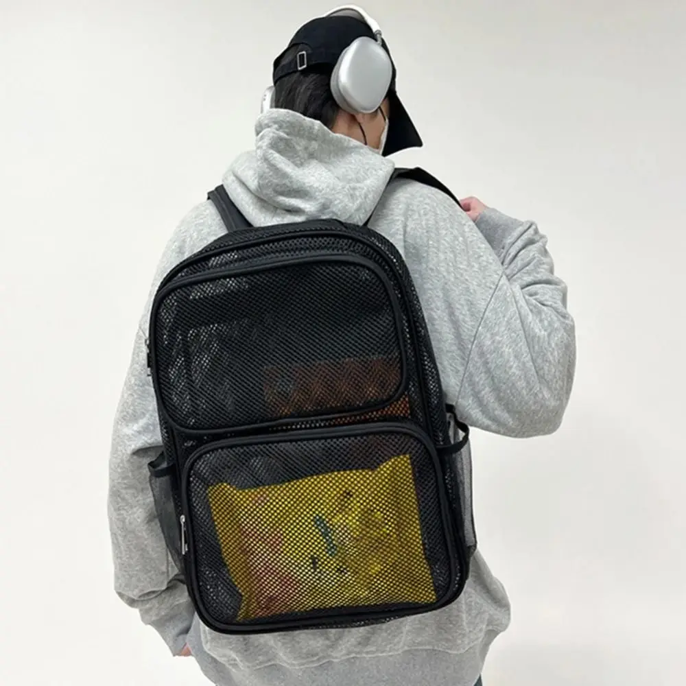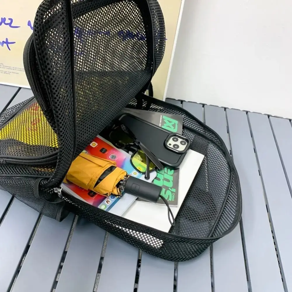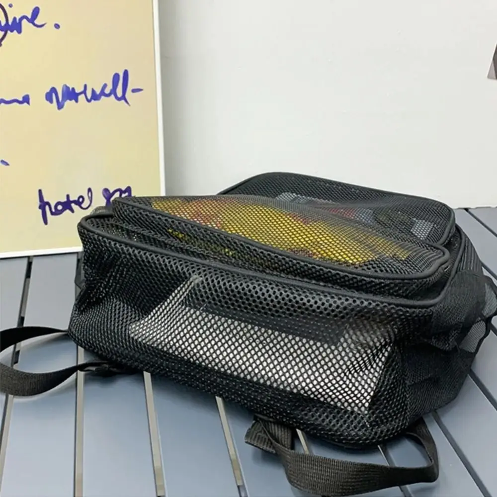 Package Includes: 1pc Large Mesh Backpack Quick-Dry Convenience: The innovative mesh design of our mesh bookbag not only offers excellent ventilation but also ensures that any damp contents dry out quickly. This feature is especially beneficial for beachgoers and fitness enthusiasts who frequently need to transport wet items without the hassle of waiting for them to dry.