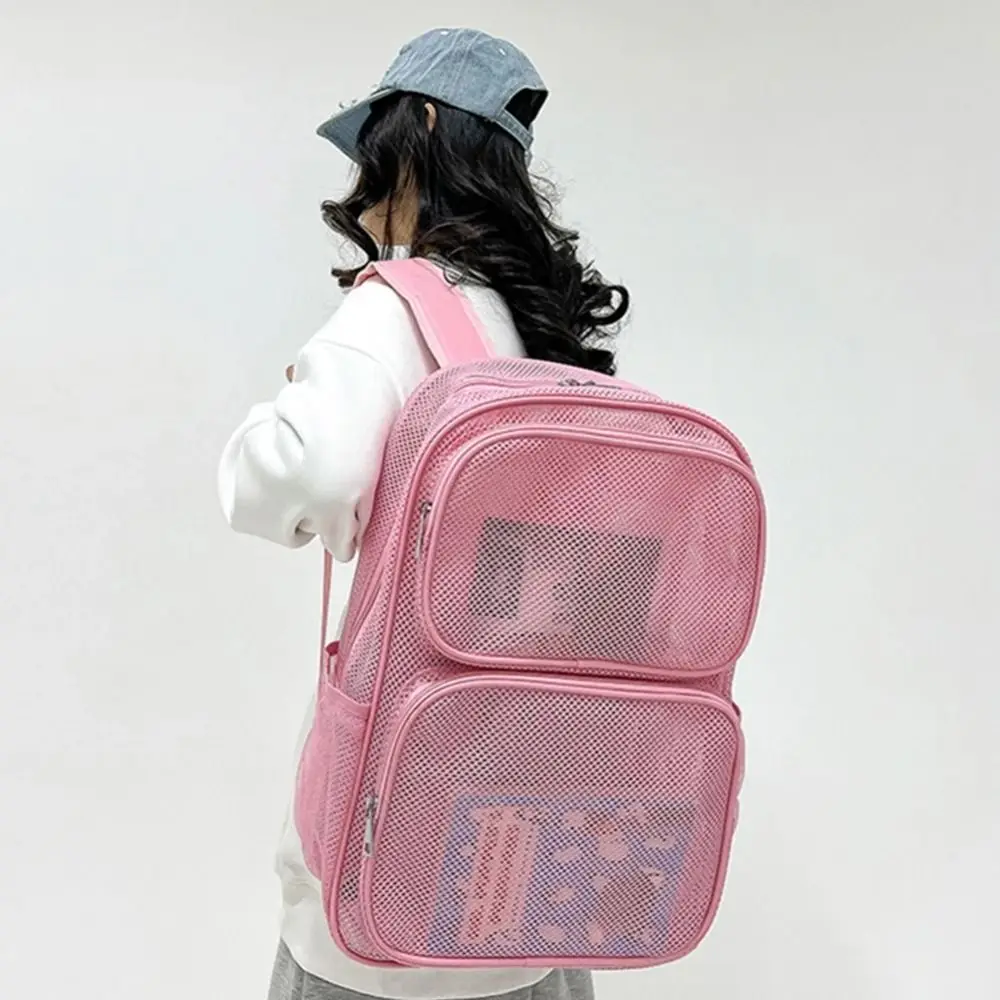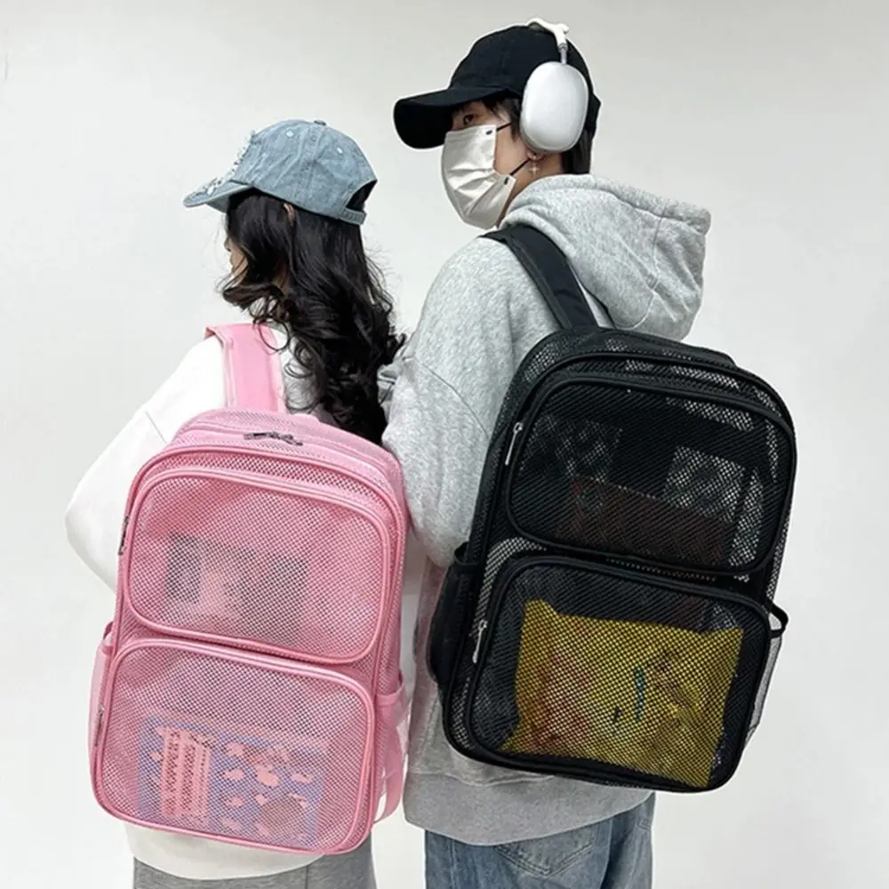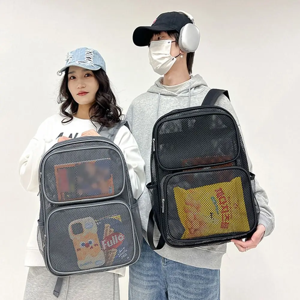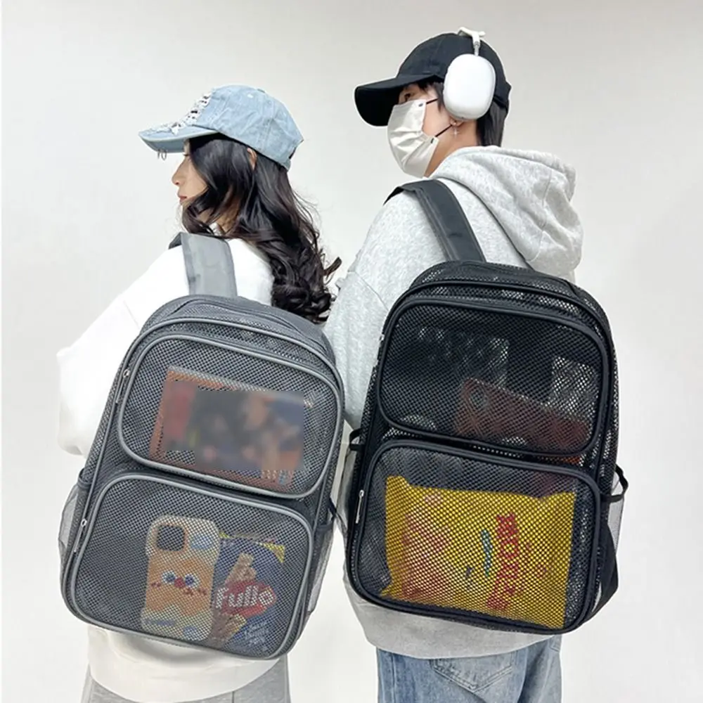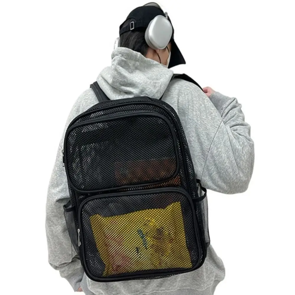 Package Includes: 1pc Large Mesh Backpack Quick-Dry Convenience: The innovative mesh design of our mesh bookbag not only offers excellent ventilation but also ensures that any damp contents dry out quickly. This feature is especially beneficial for beachgoers and fitness enthusiasts who frequently need to transport wet items without the hassle of waiting for them to dry.