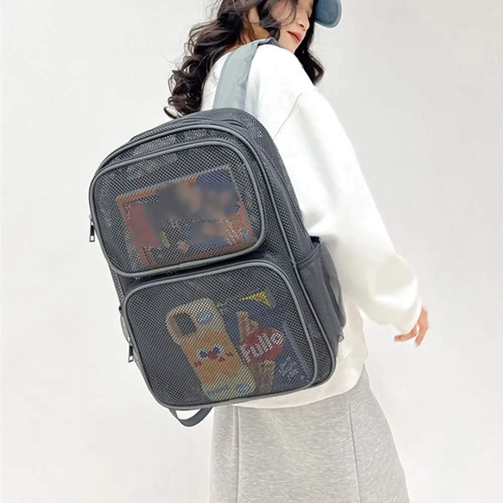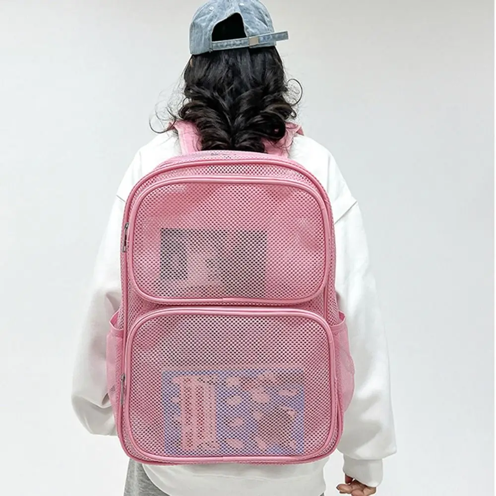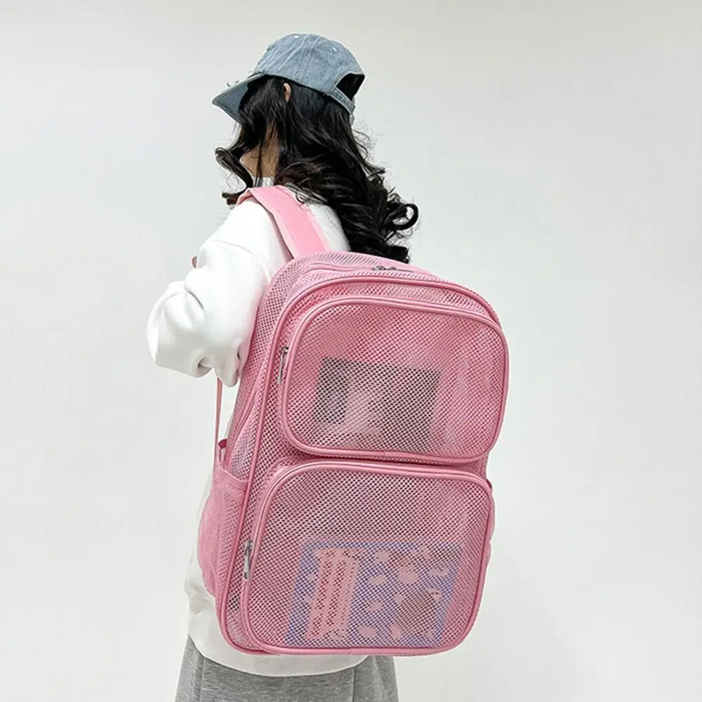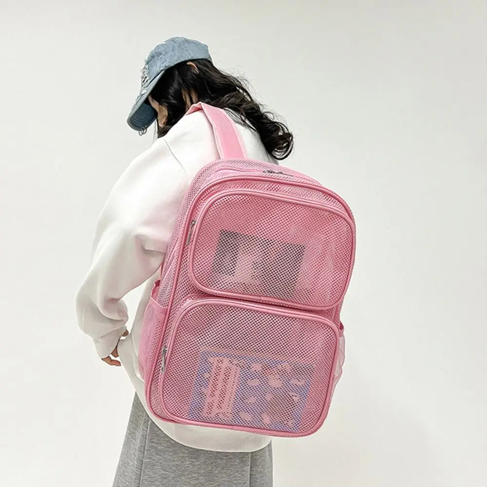 Package Includes: 1pc Large Mesh Backpack Quick-Dry Convenience: The innovative mesh design of our mesh bookbag not only offers excellent ventilation but also ensures that any damp contents dry out quickly. This feature is especially beneficial for beachgoers and fitness enthusiasts who frequently need to transport wet items without the hassle of waiting for them to dry.