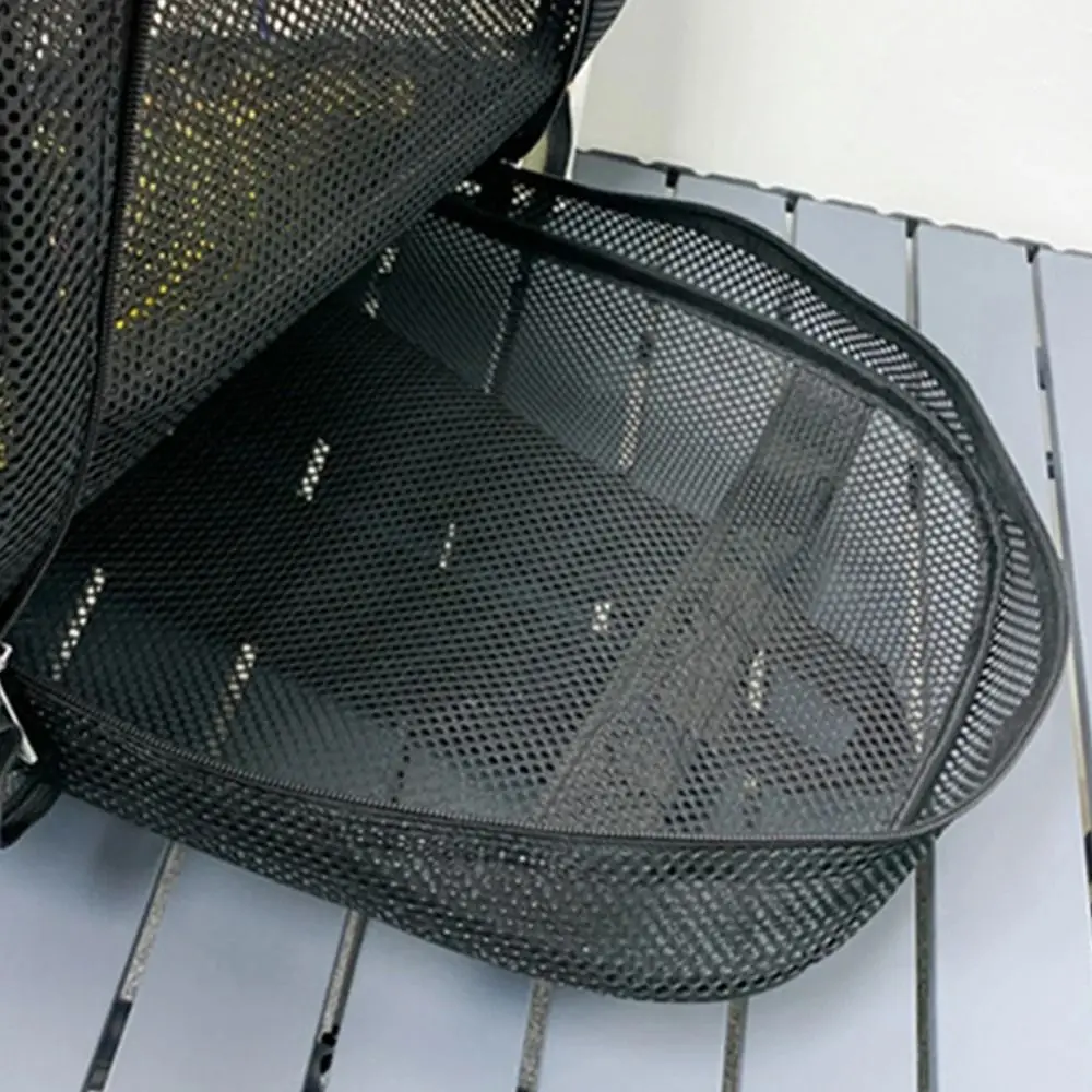 Breathable Mesh Design: Our large mesh backpack's unique nylon mesh construction offers unparalleled breathability, allowing for rapid drying of sweaty gym clothes or wet swimwear. The high-quality fabric ensures durability while the mesh design promotes air circulation, preventing odor build-up and maintaining freshness of contents.