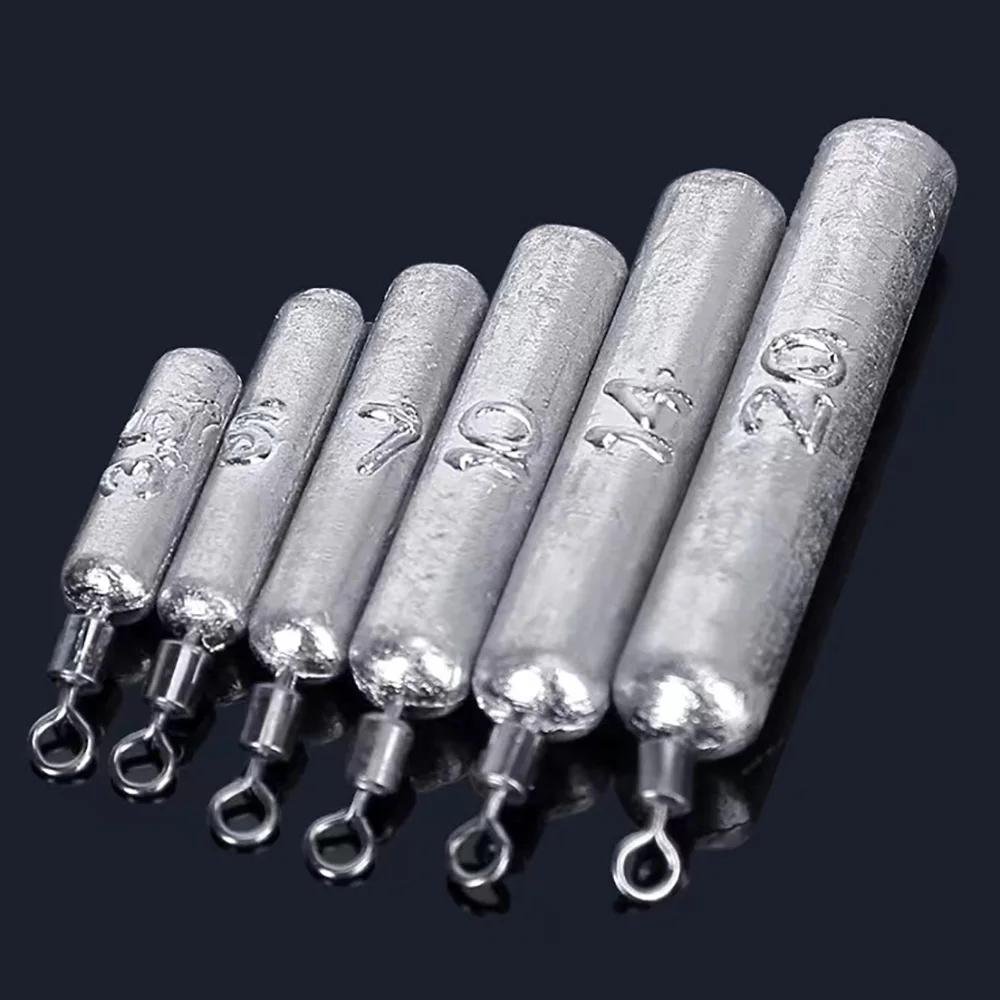 3. De forma cilíndrica Pesos: con un clip de línea de estilo de pellizco que permite a los pescadores cambiar el tamaño de su peso o la longitud del líder sin tener que volver a atar.