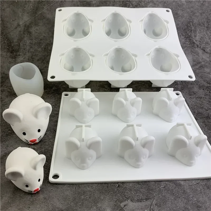 Molde de ratón con forma bonita y creativa de 6 cavidades, Mousse, pastel, postre, hornear Chocolate, molde de silicona, herramienta de decoración de pasteles de Fondant de cocina