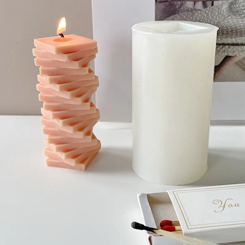 Molde de vela de silicona con columna cuadrada en espiral 3D, serie de arquitectura geométrica creativa DIY, molde de jabón de yeso para velas de aromaterapiaParámetros del producto