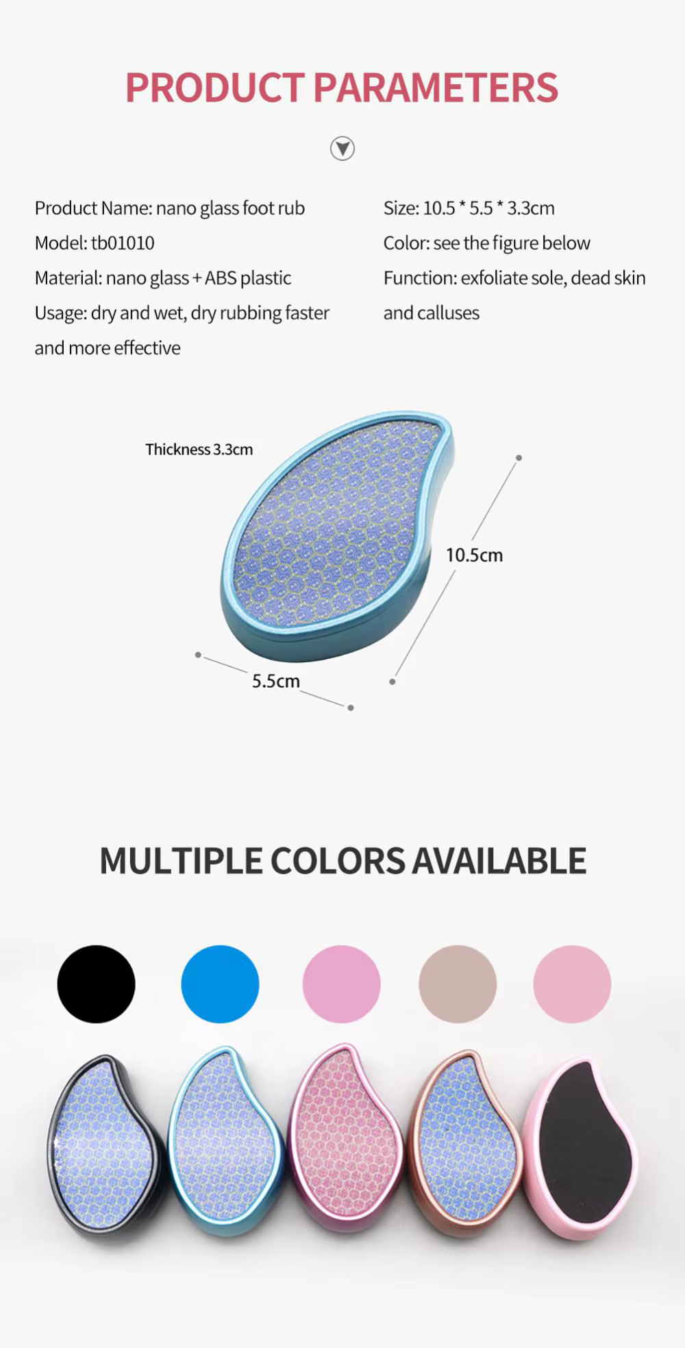 2: exfolia fácilmente la piel muerta y los callos, vidrio nano ABS + material, no hay necesidad de preocuparse por el óxido