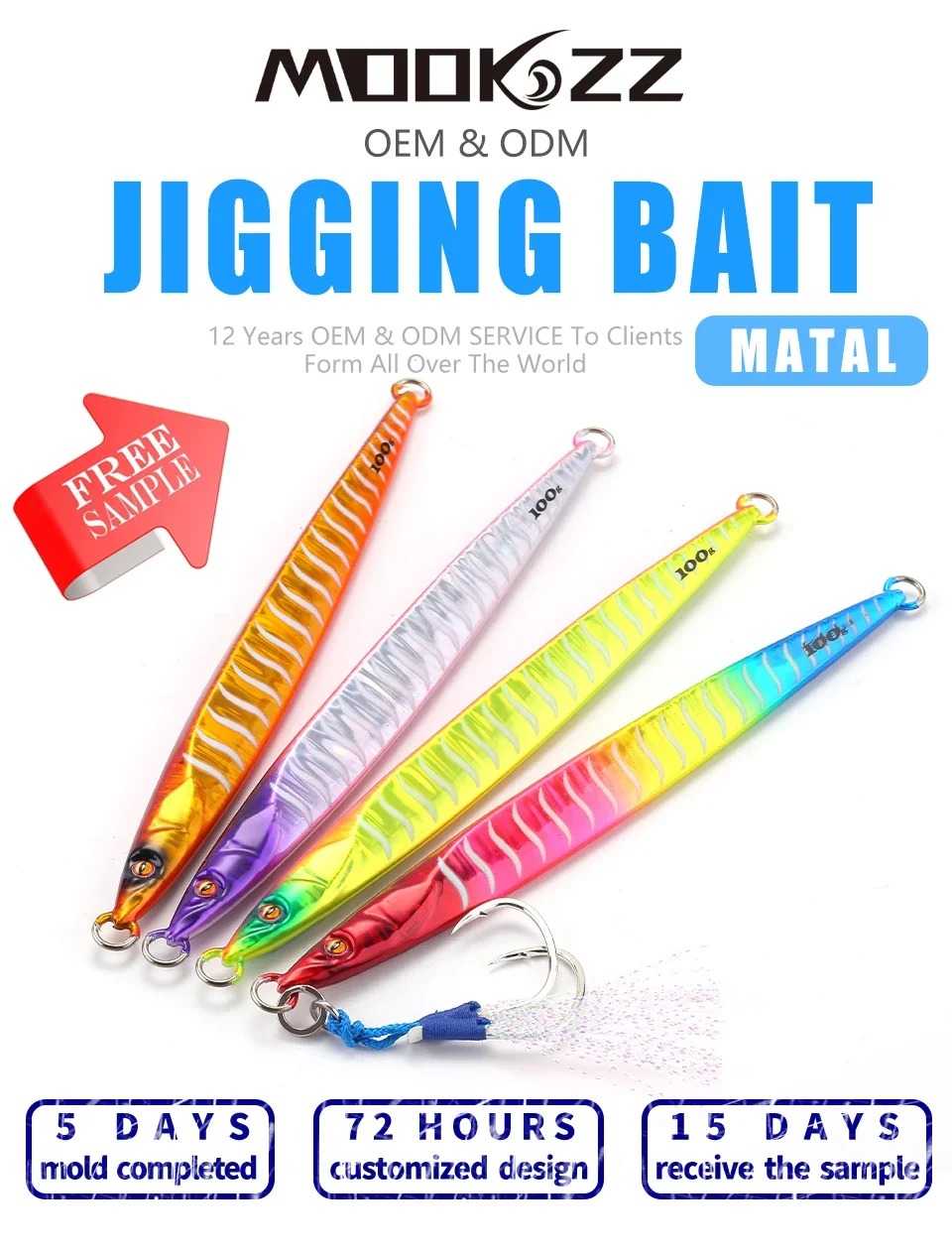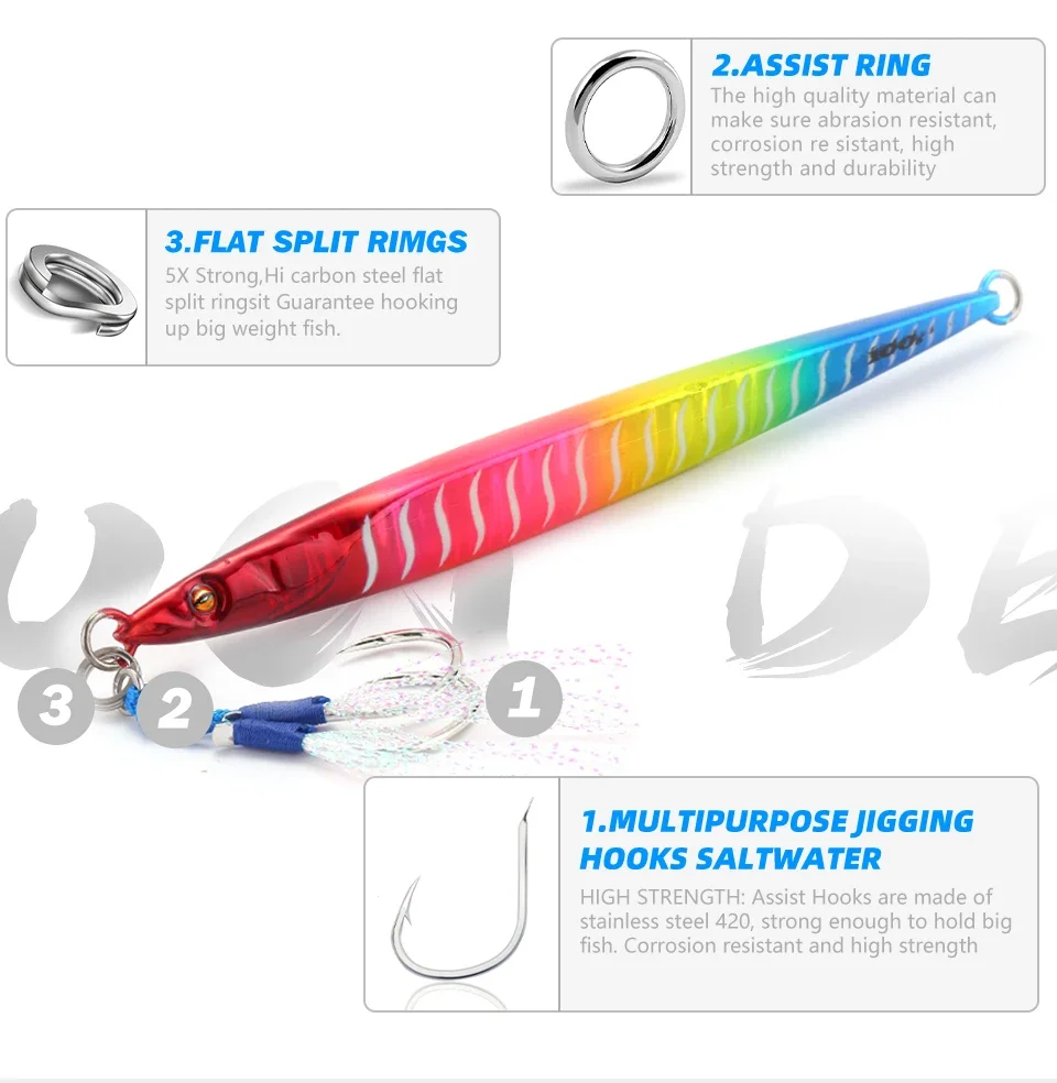 MOOKZZ-señuelo deslizante de sardina para pesca en barco, anzuelo Jigging de larga velocidad, 100g, 120g, 150g, 200g, 250g