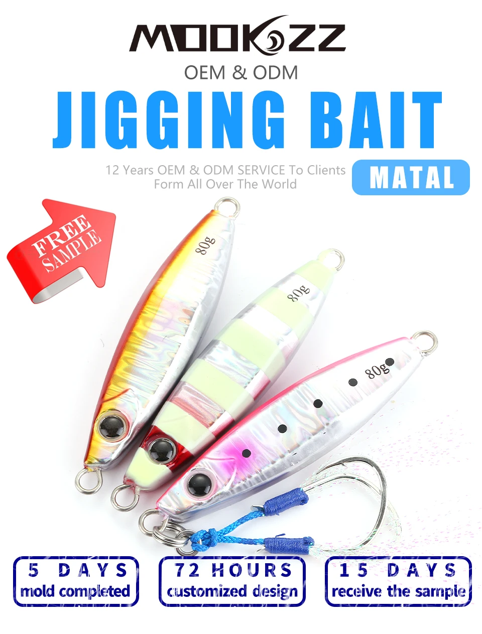 MOOKZZ-señuelo de Metal para pesca lenta, cebo biónico Artificial duro, Jinging 30g 40g 60g 80g 100g 130g