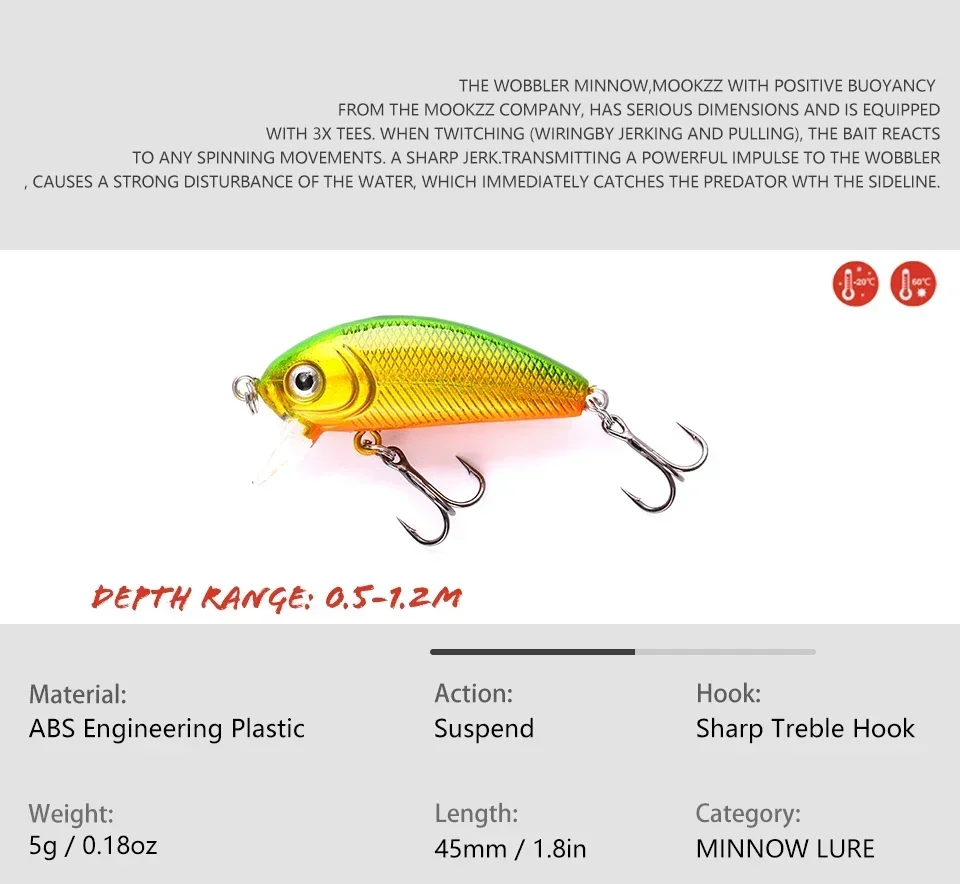 MOOKZZ señuelo de pesca de carpa, pececillo flotante, 45MM, 5G, accesorios de pesca