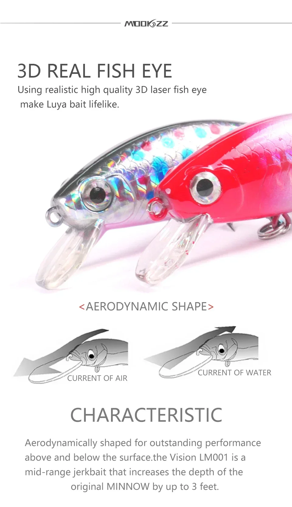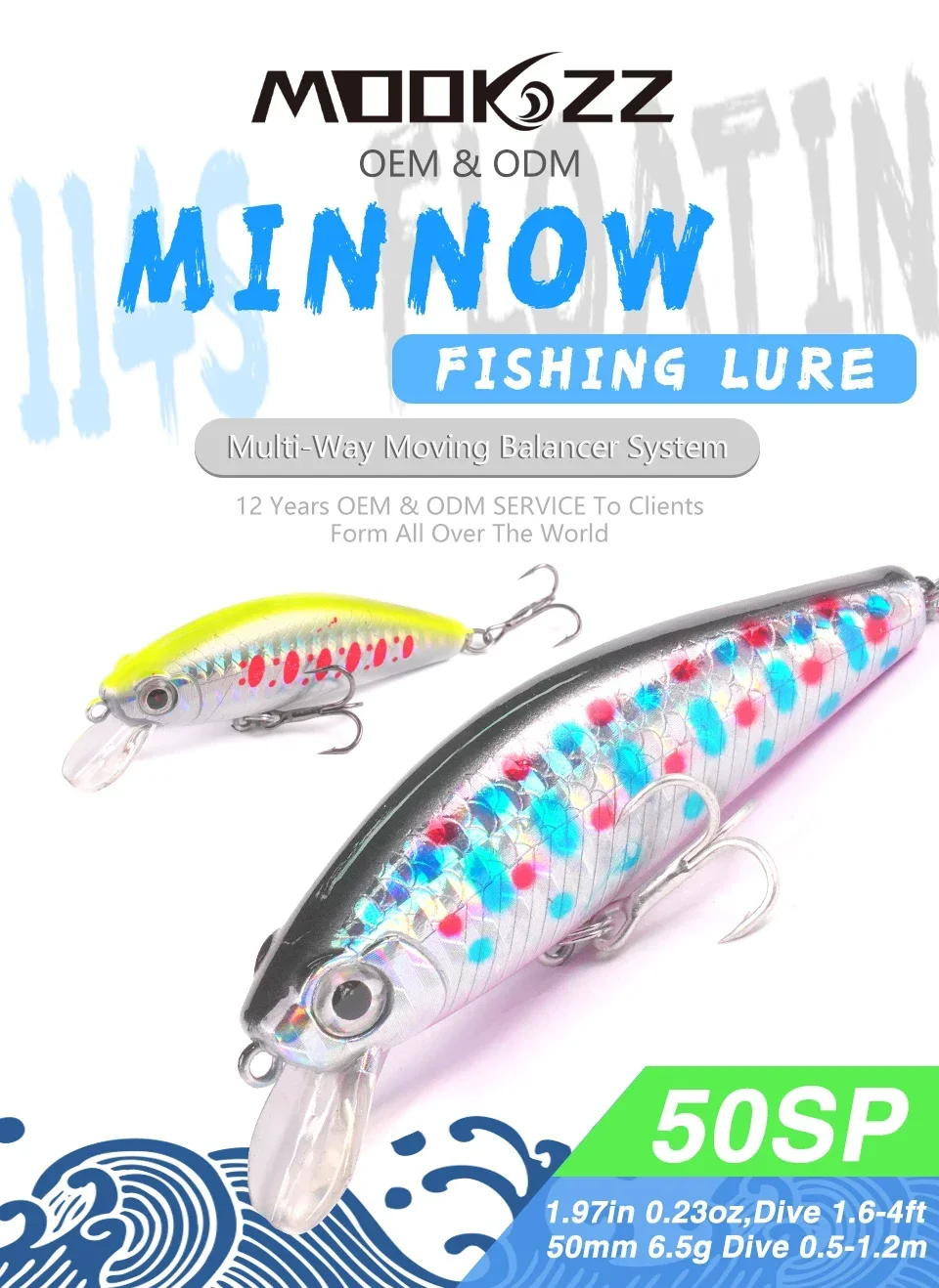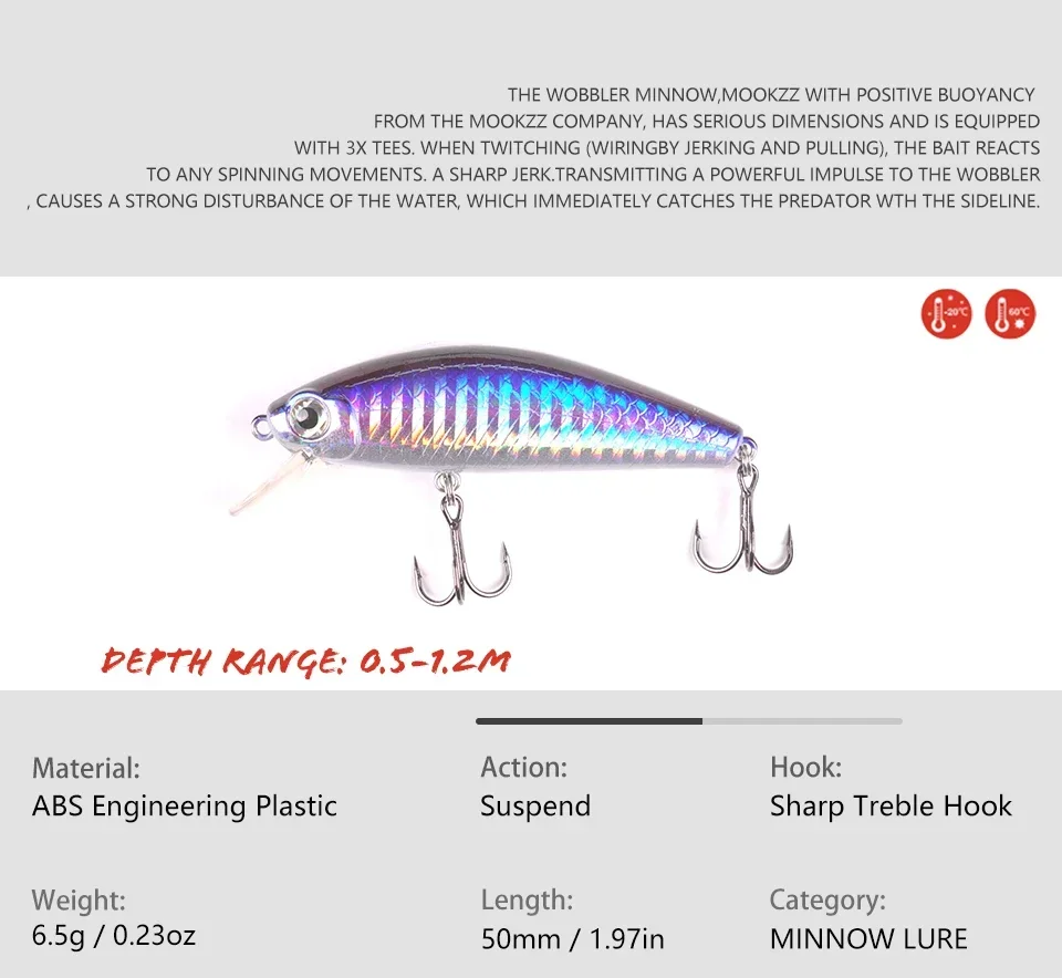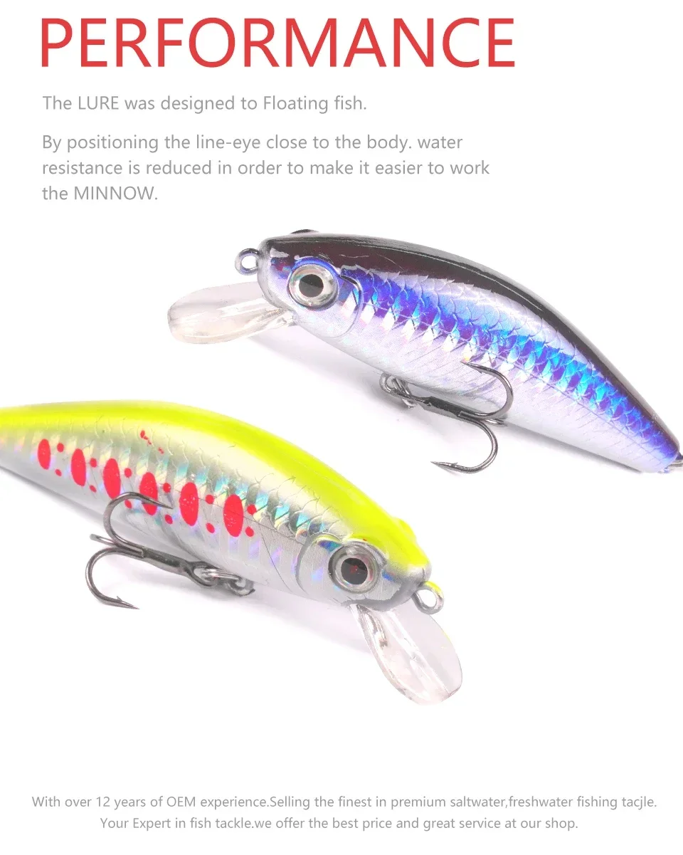 MOOKZZ-señuelo de pesca flotante Minnow, 50MM/75MM, 6,5G/11G, novedad