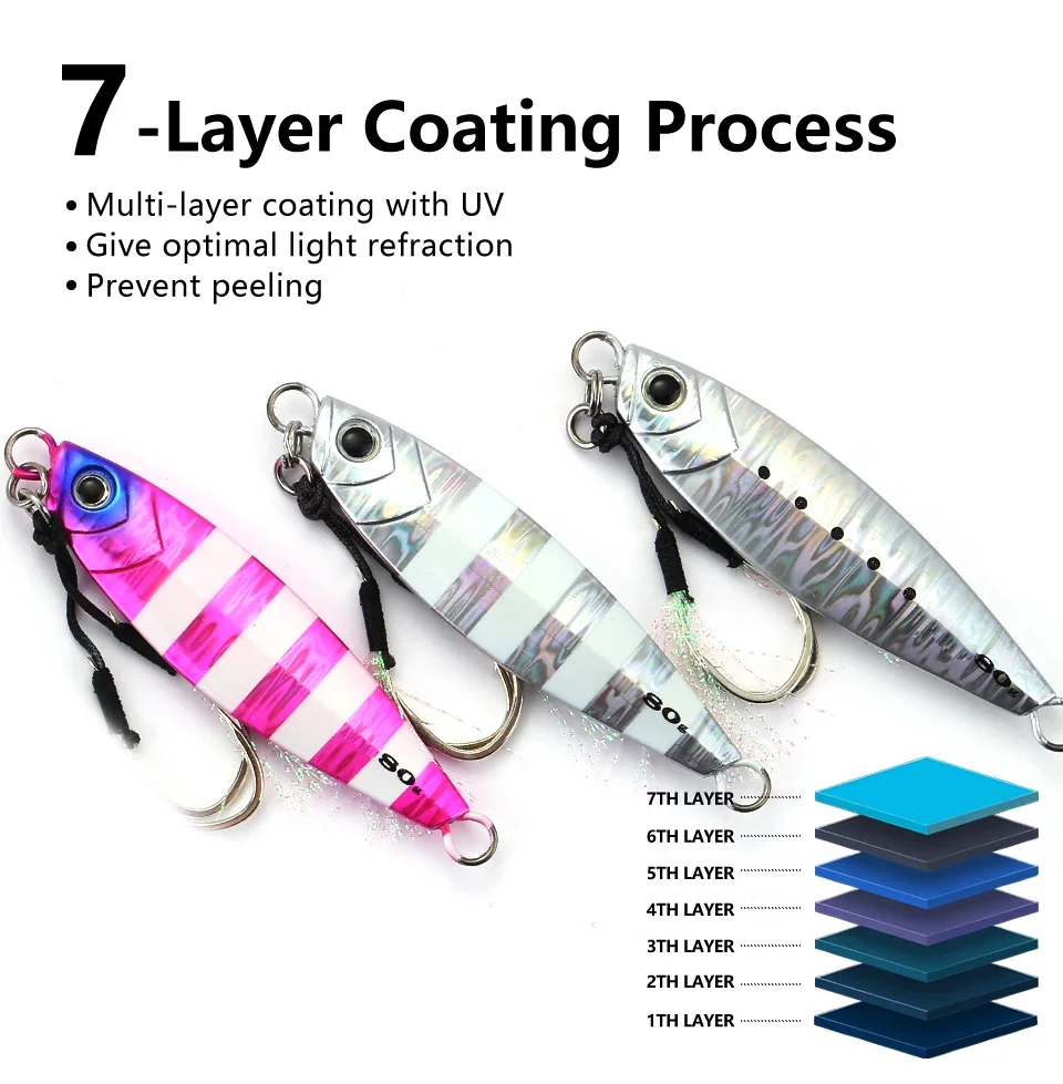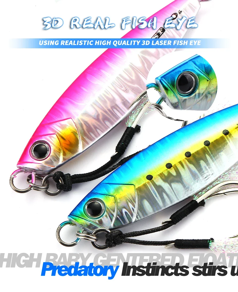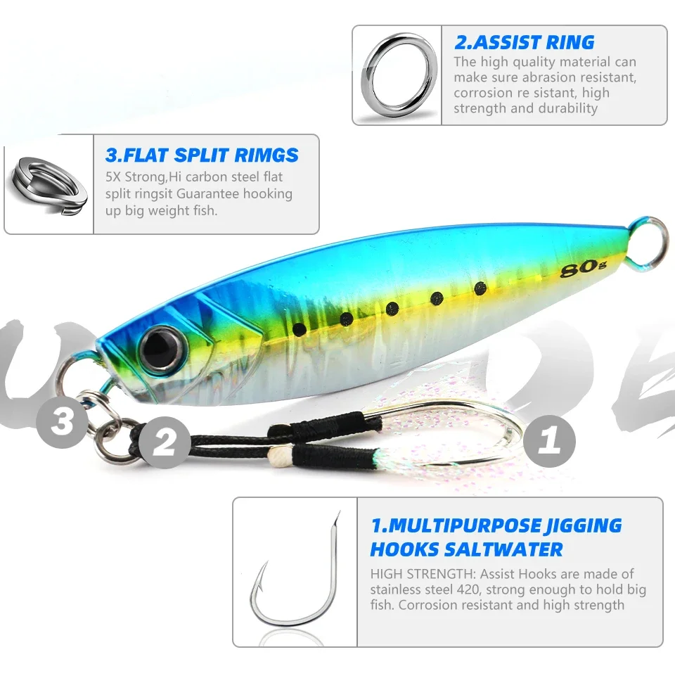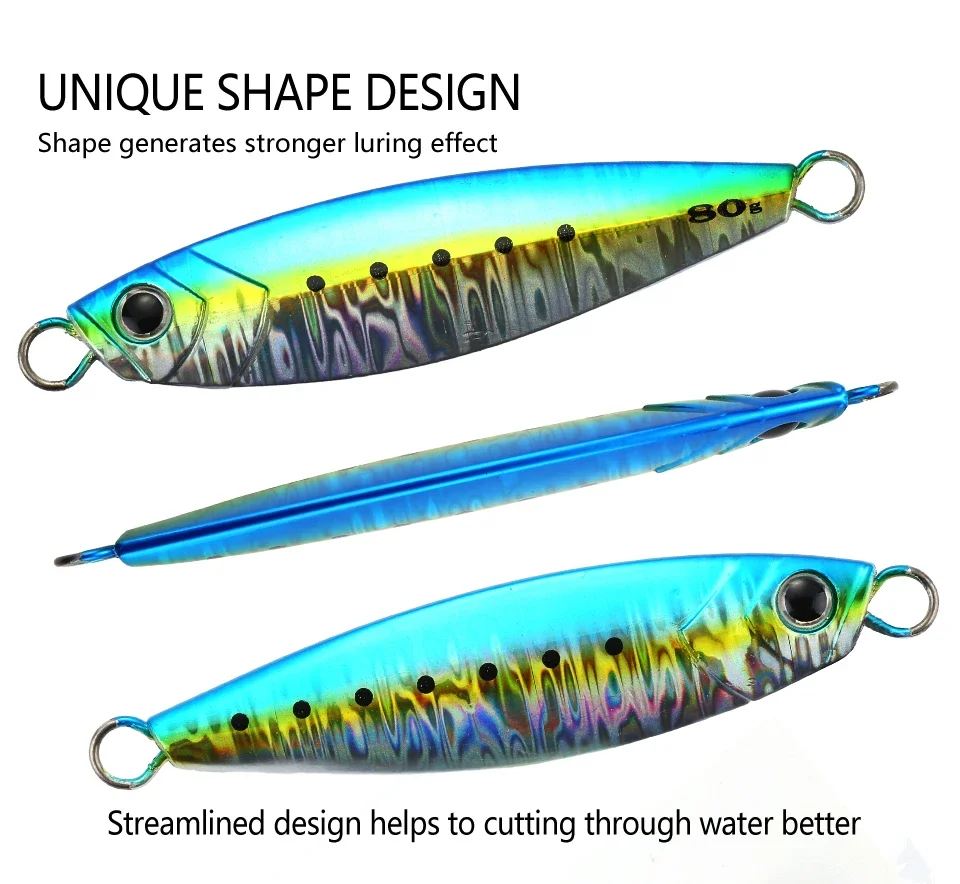 MOOKZZ-señuelo de pesca de jigging lento, anzuelo largo de Metal fundido, 20g, 30g, 40g, 60g, 80g, para barco de aguas profundas