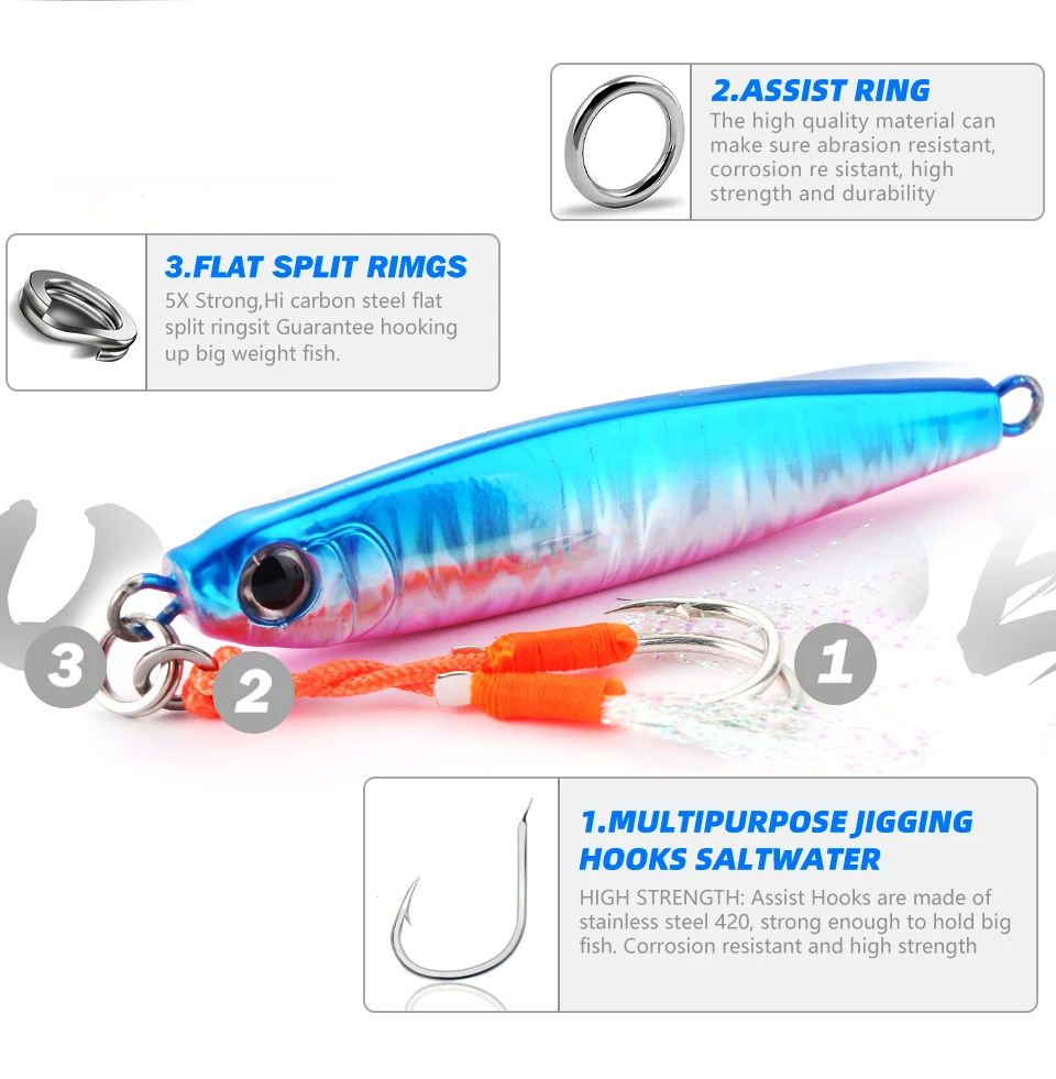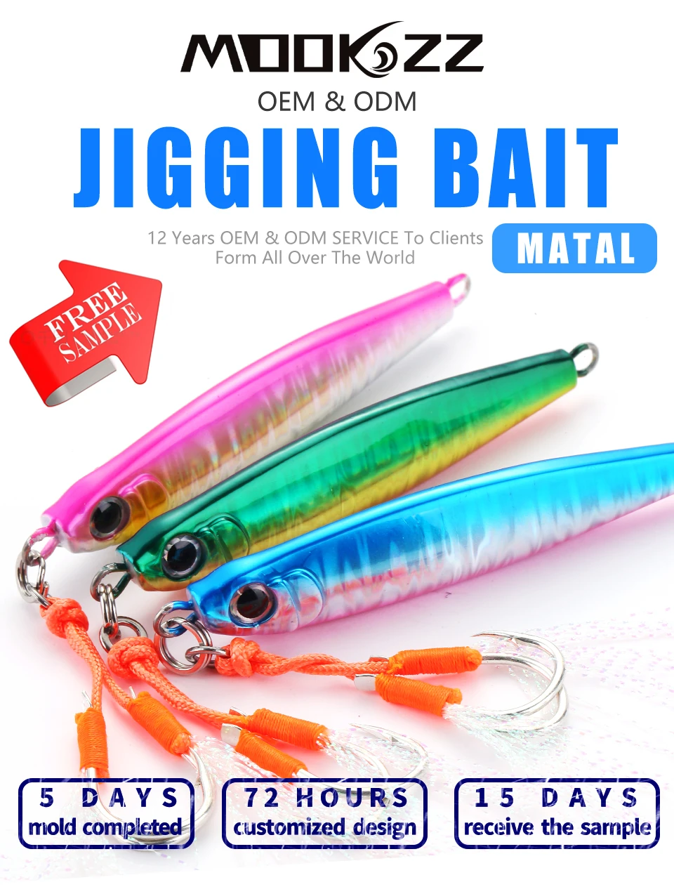 MOOKZZ-señuelo de pesca Jigging de Metal, aparejo de cebo Artificial, Jigging de fundición a tierra, Jigging de lubina, 40G, 60G, 80G