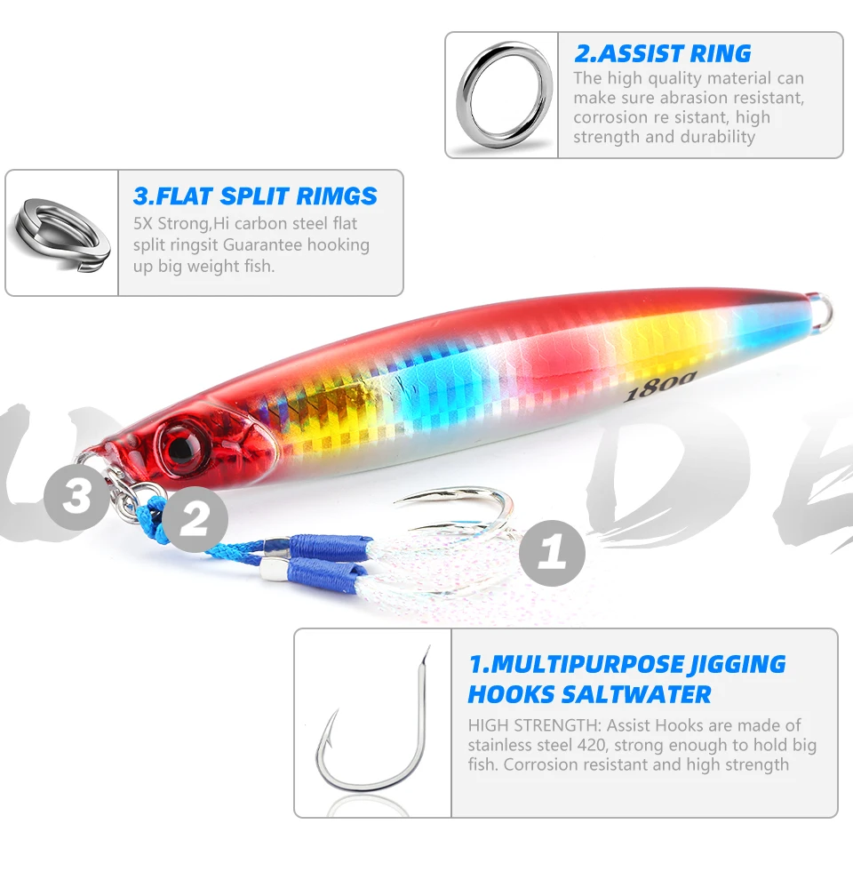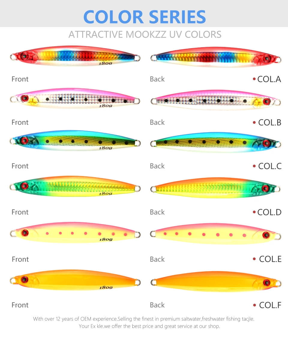 MOOKZZ-señuelo de pesca de mar con anzuelo, plantilla de paso lento, 100g, 150g, 180g, 200g, 220g