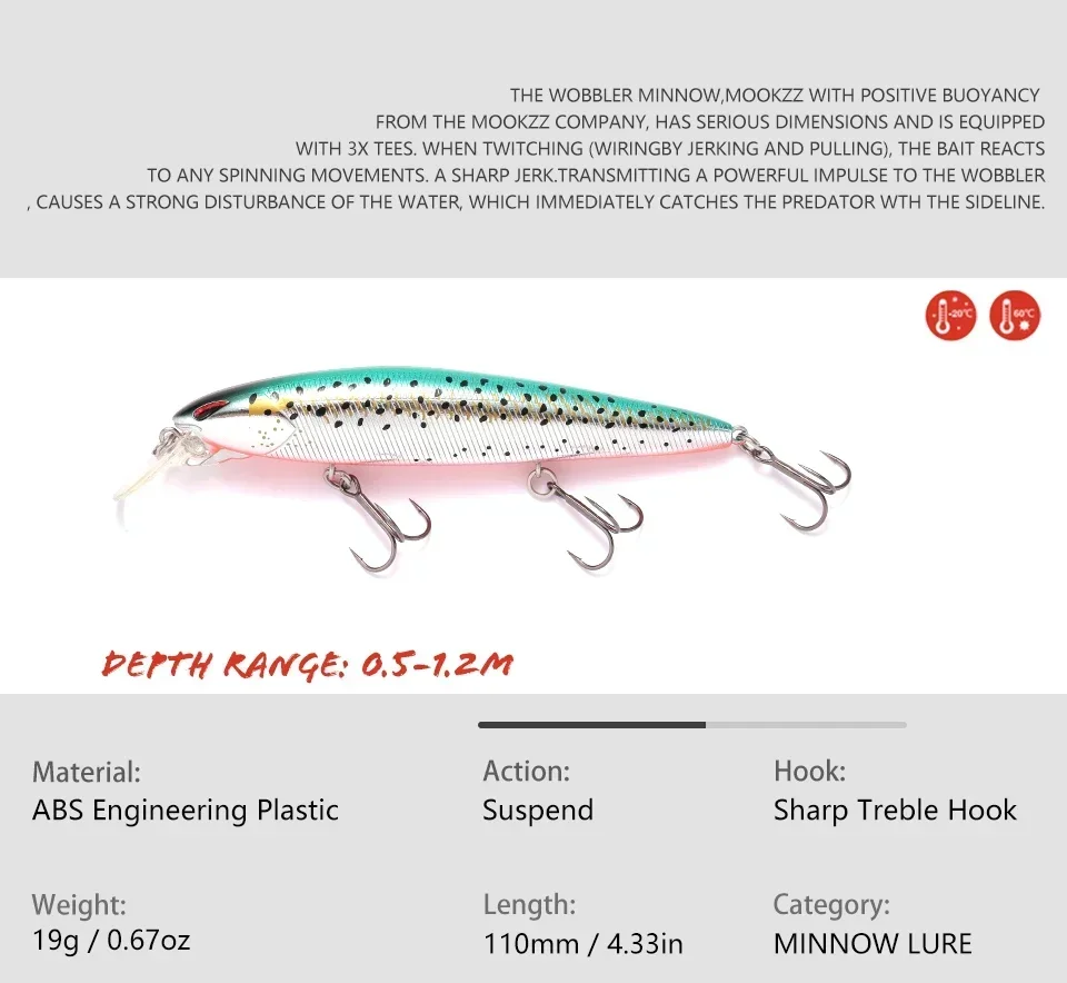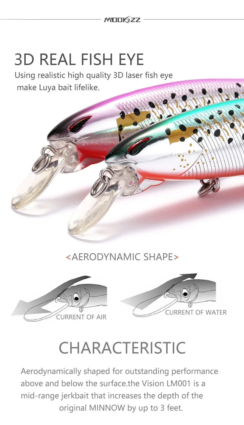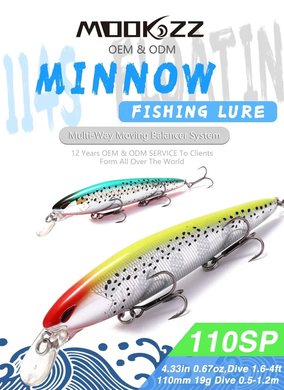 MOOKZZ-señuelo de suspensión de pececillos de mar, anzuelo duro oscilante, ojos 3D, 110MM, 19G, Crankbait