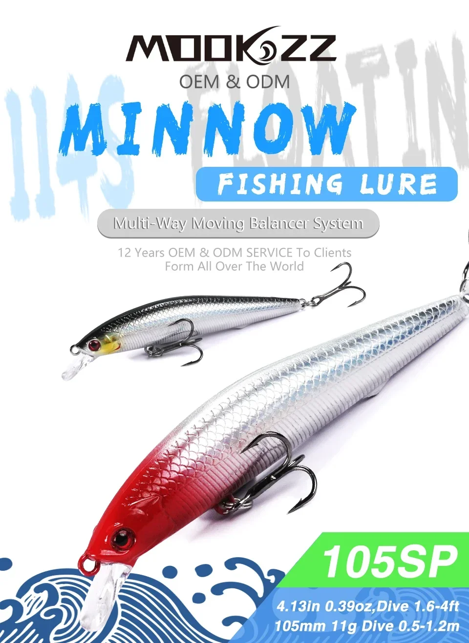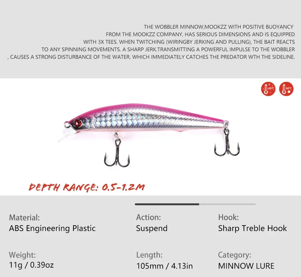 MOOKZZ-señuelos artificiales de pesca, cebos Wobblers de alta calidad para pececillos que se hunden, suspensión, modelo caliente, 6,5G/9G/11G