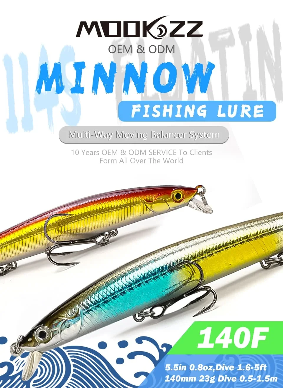 MOOKZZ-Señuelos de Pesca duros, cebos de calidad Minnow, Wobblers, buena acción, aparejos de pesca Artificiales Profesionales, 140mm, 23g