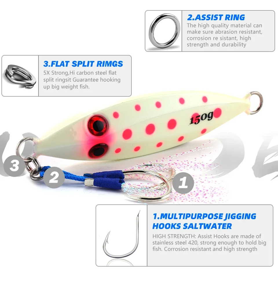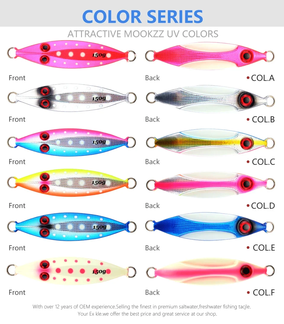 MOOKZZ Slow Jigjing100G/150G/200G/250G cebo duro jingging señuelos para pesca en el mar aparejos de pesca