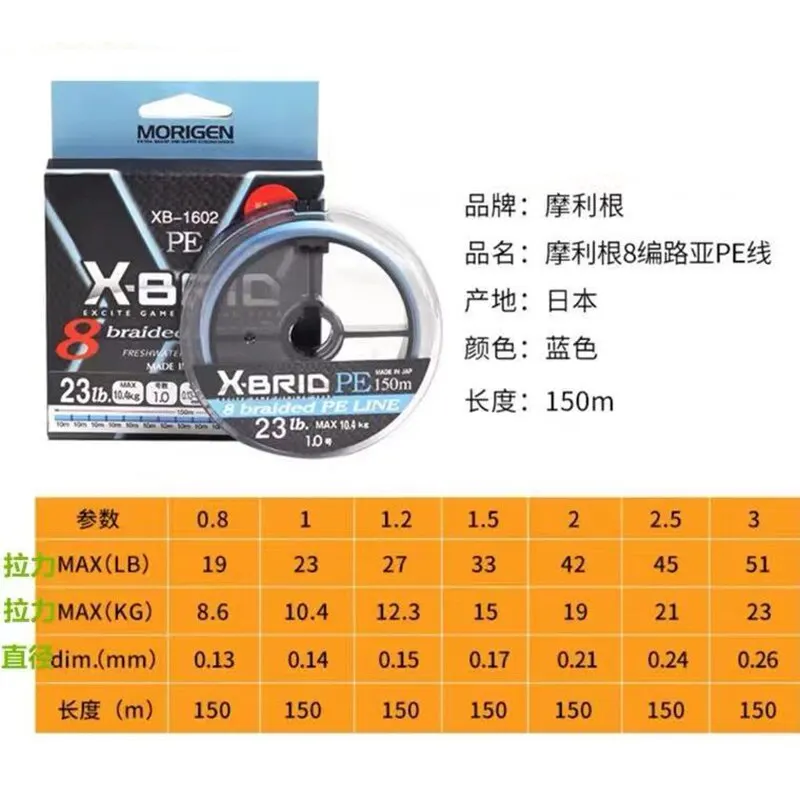 Morigen-señuelo trenzado original japonés Xbraid Pe line 8, línea de pesca rosa y azul, 150 metros, línea superior de PE