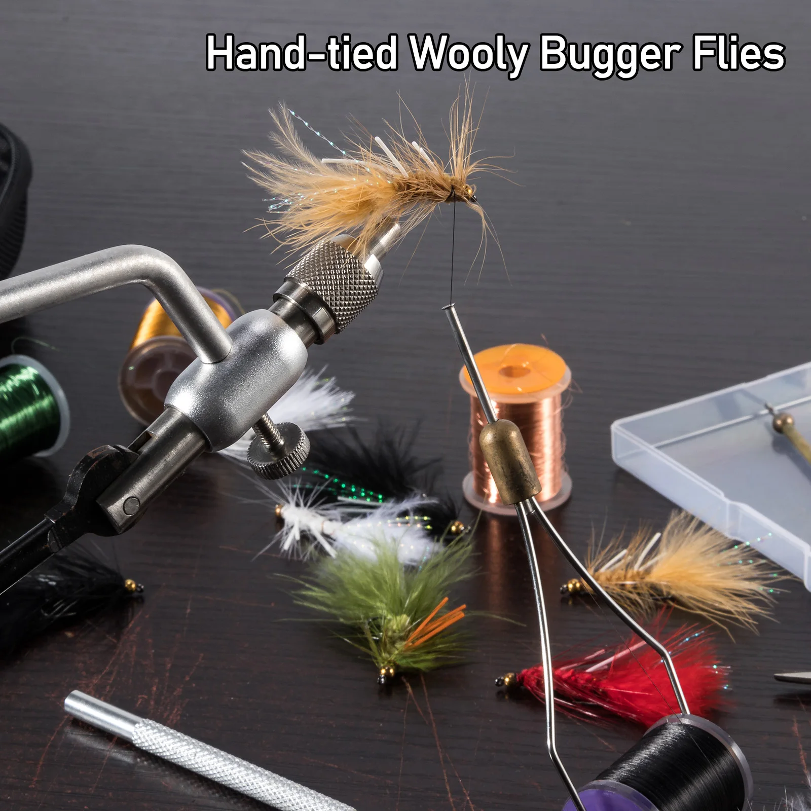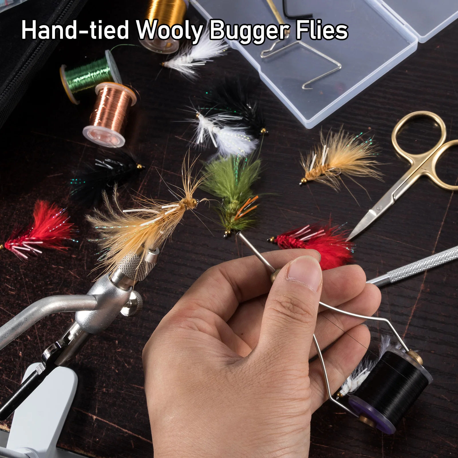 Moscas versátiles: Disponible en cinco colores: negro, rojo, amarillo, verde y blanco. Estas moscas de pesca pueden imitar varios insectos y atraer a diferentes especies de peces, como trucha, panfish, lubina, crappie, BlueGill, Steelhead, salmón, etc.