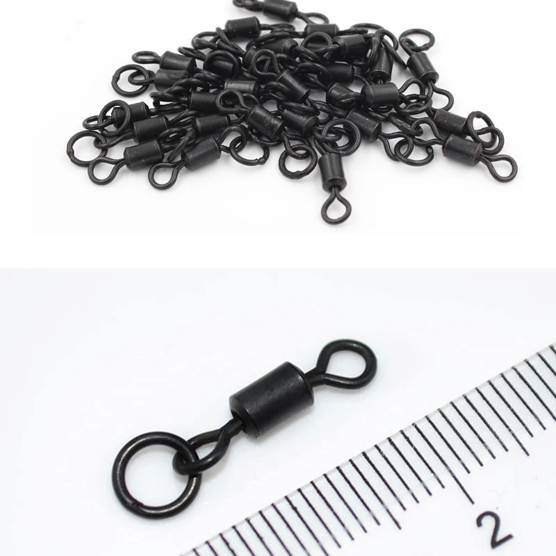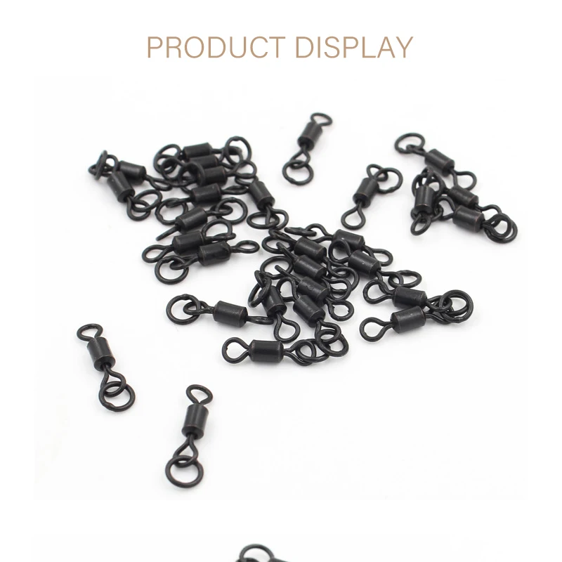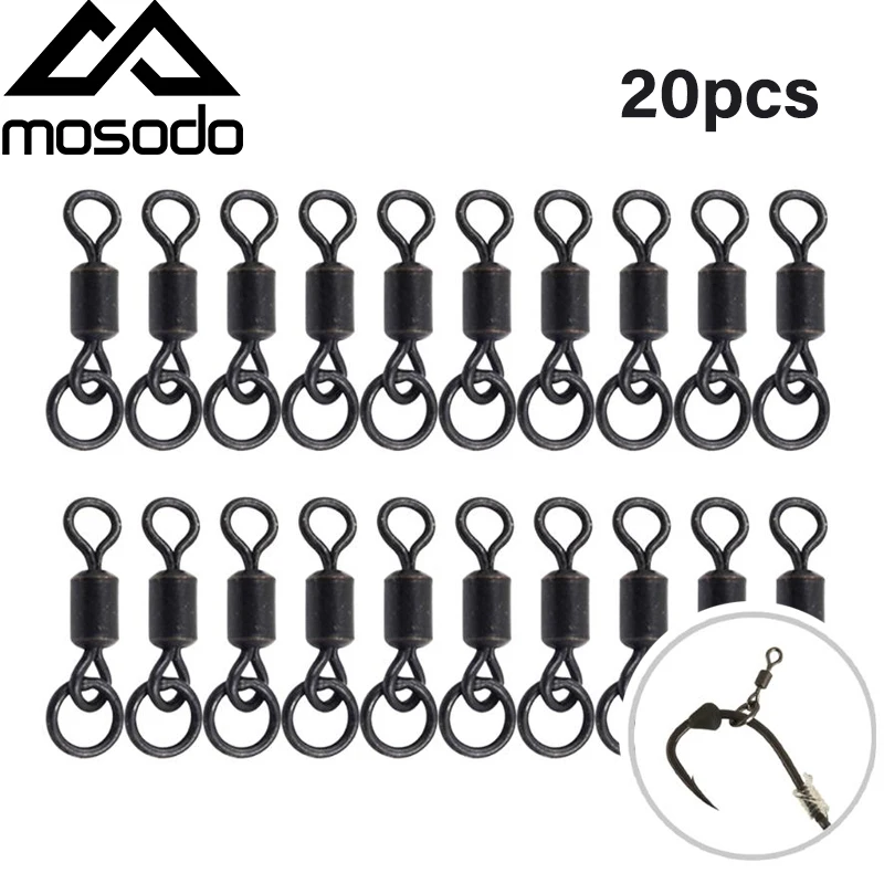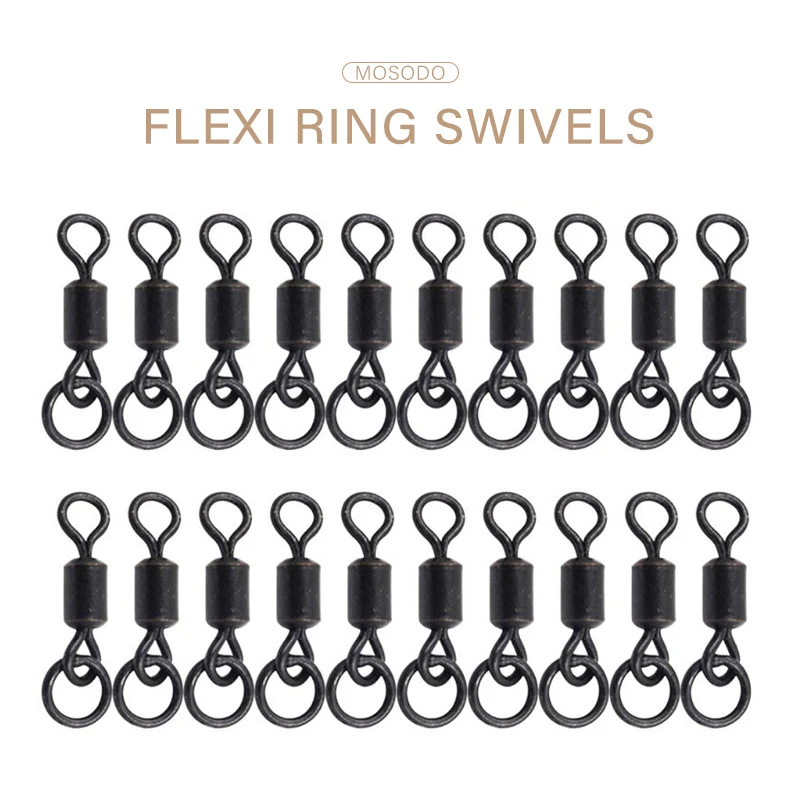 Mosodo 20 piezas giratorios de pesca de carpa anillo flexible de cambio rápido giratorios negro mate micro gancho anillo de enlace con giro rodante