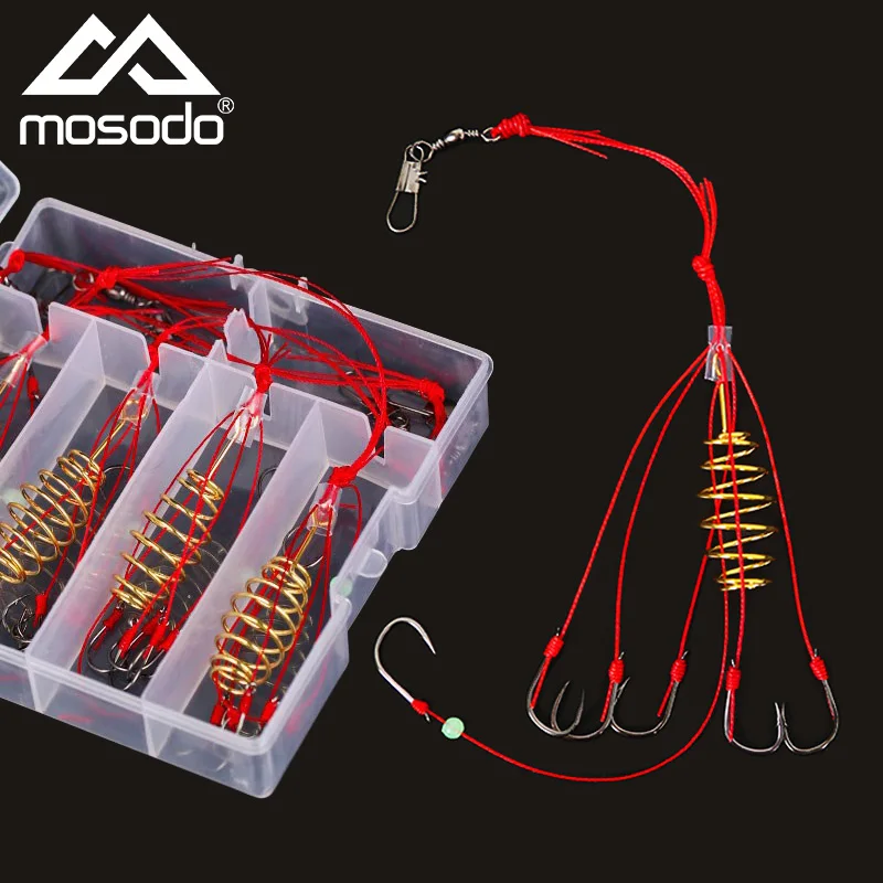 Mosodo4 unids/caja ganchos para cebo de pesca de carpa ganchos para trampa de señuelo con alimentador de resorte jaula de cebo ganchos de explosión herramientas de aparejos de pesca gruesas