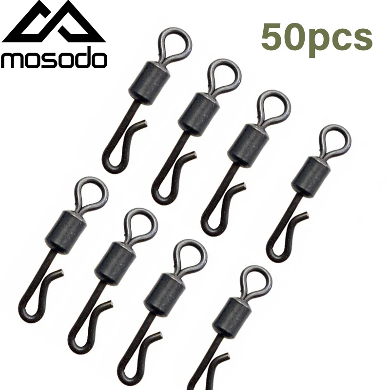 Mosodo 50 piezas, rodamiento negro mate, eslabones giratorios de cambio rápido, plataformas de carpa, conector a presión oscilante de cuerpo largo para anzuelos de pesca de carpa