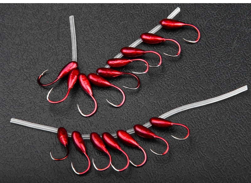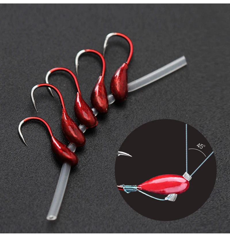 MosodoAnzuelos de pesca con cabeza de plantilla, anzuelos de pesca en hielo volcados, gusano rojo, anzuelo de gusano, señuelo, cebo, aparejos de Terminal de pesca de carpa