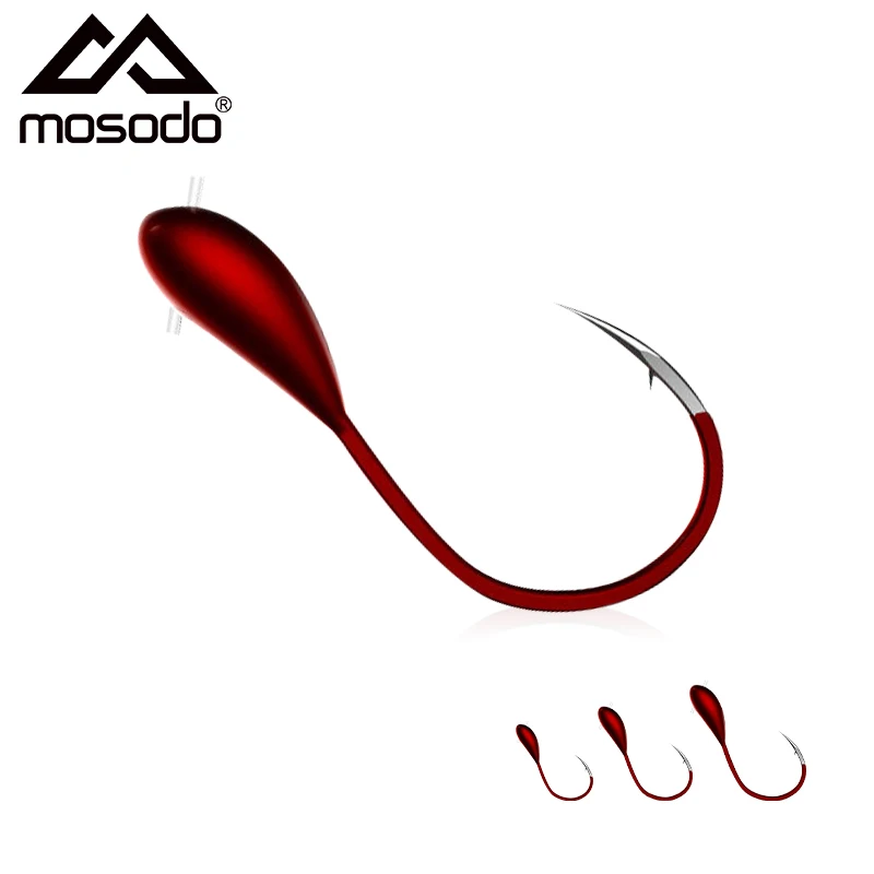 MosodoAnzuelos de pesca con cabeza de plantilla, anzuelos de pesca en hielo volcados, gusano rojo, anzuelo de gusano, señuelo, cebo, aparejos de Terminal de pesca de carpa