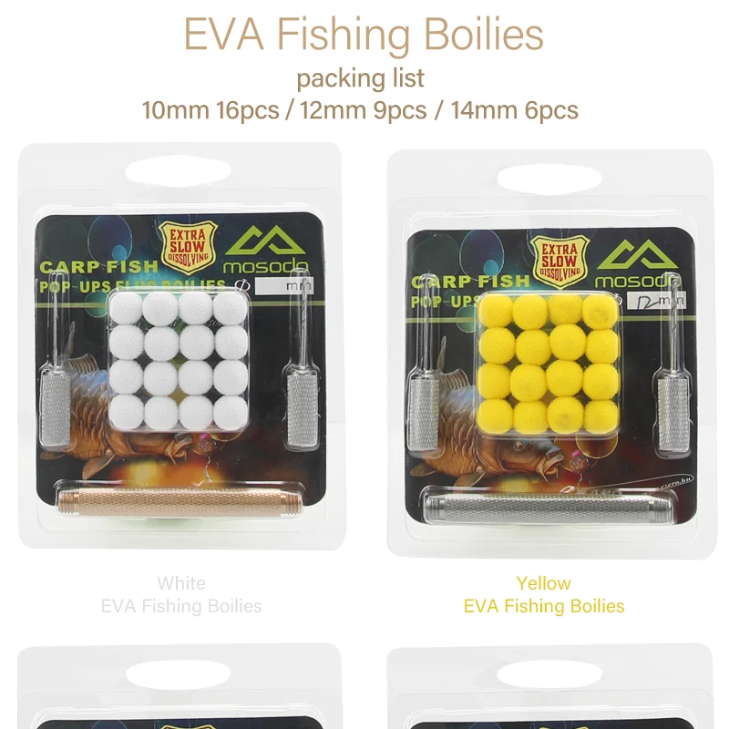 Mosodo-Boilies de pesca de carpa, cebo flotante Eva de 10mm, 12mm, 14mm, 16 Uds., 9 Uds., 6 uds., señuelo emergente en embalaje de tarjeta