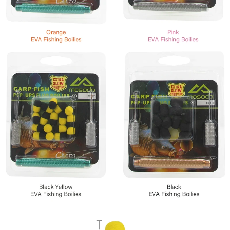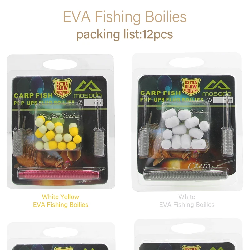 Mosodo-Boilies de pesca de carpa, Pill Float Beads Eva 8mm x 12mm Pop Up insípido cebo amarillo negro, 12 Uds., señuelo emergente en embalaje de tarjeta