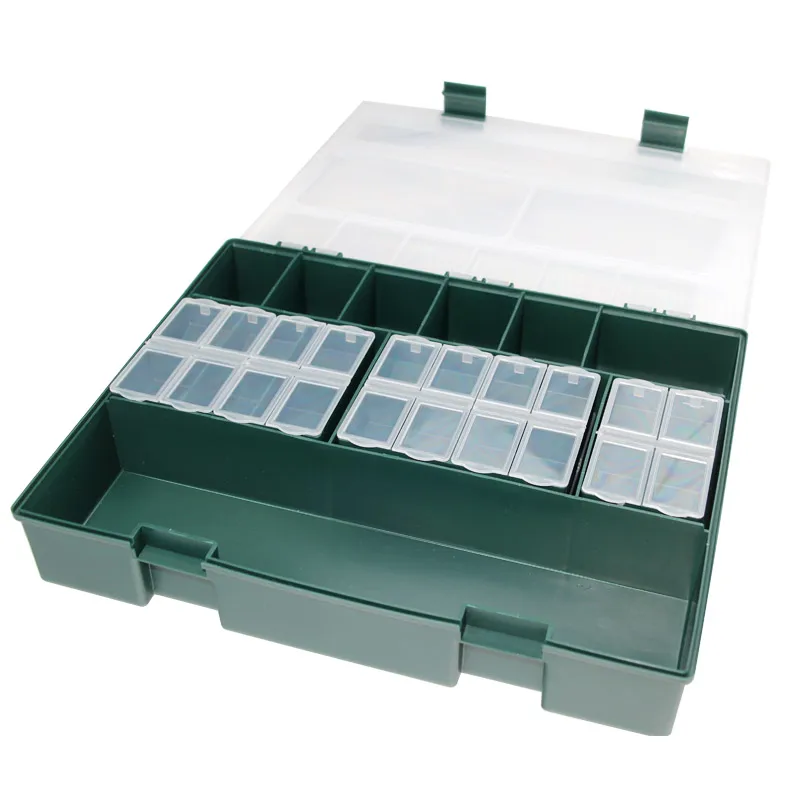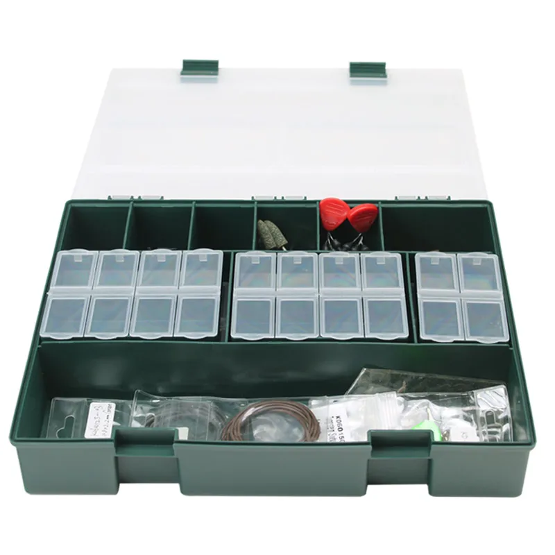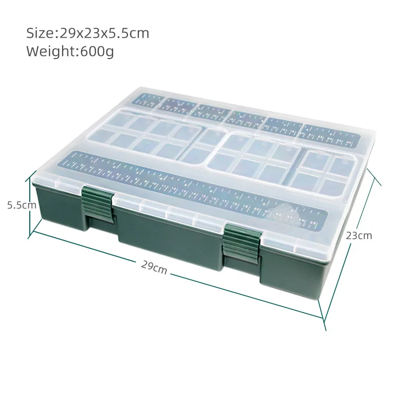 Mosodo-caja de aparejos de pesca de carpa de gran capacidad, con regla integrada, 6 cajas pequeñas separadas, caja de almacenamiento de accesorios