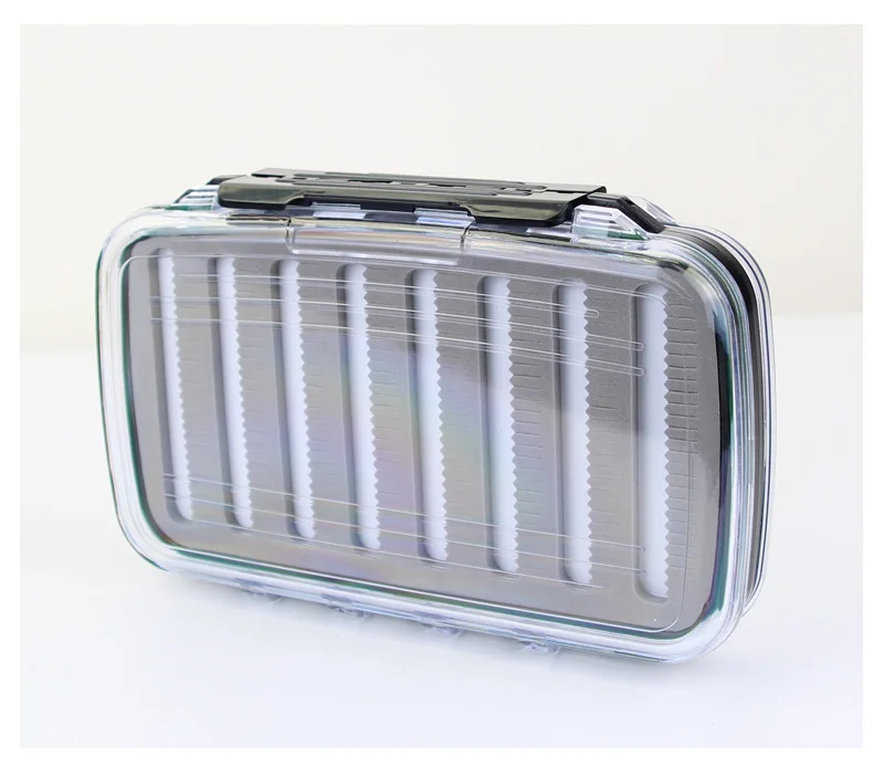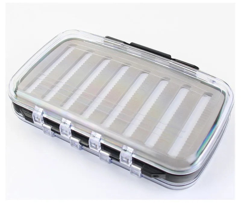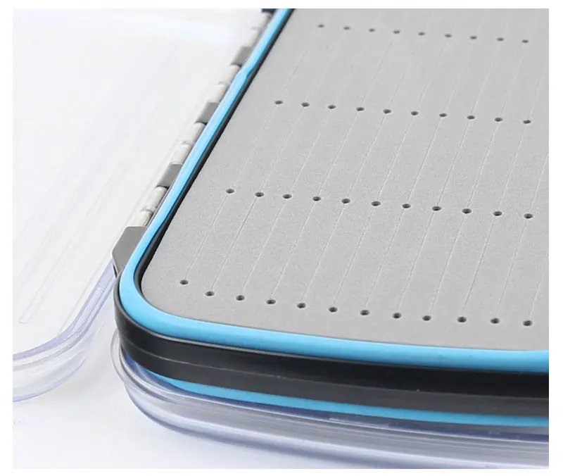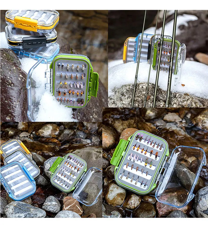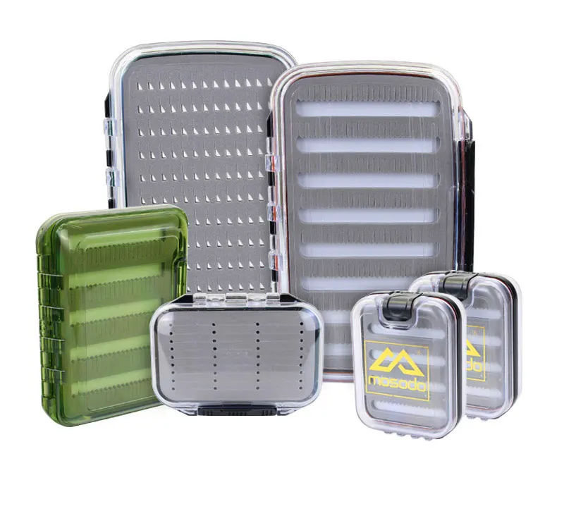 Piezas de MosodoCaja de pesca con mosca, caja de señuelos de espuma con hendidura de plástico, cajas de aparejos impermeables de doble cara, accesorios de pesca fluvial de fácil agarre