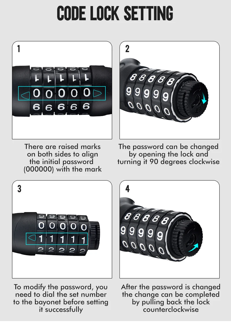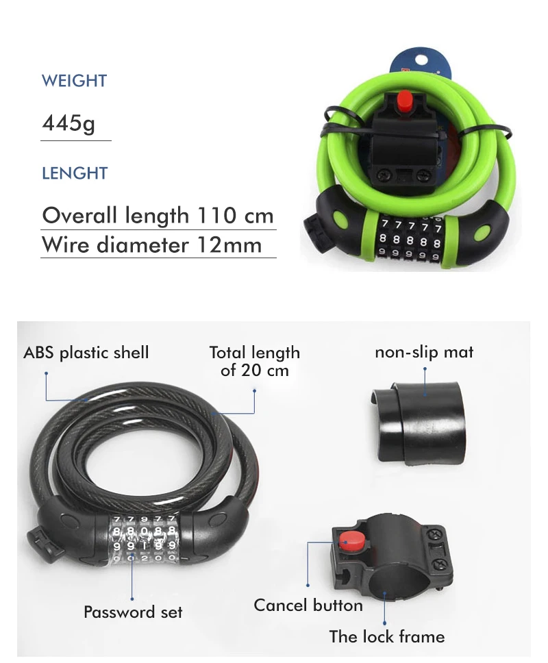 Piezas de MosodoCerraduras de bicicleta, Cable de acero, bloqueo de cadena, tija de sillín, juego de bloqueo de rueda, juego de bloqueo de ciudad, accesorios de ciclismo de bicicleta