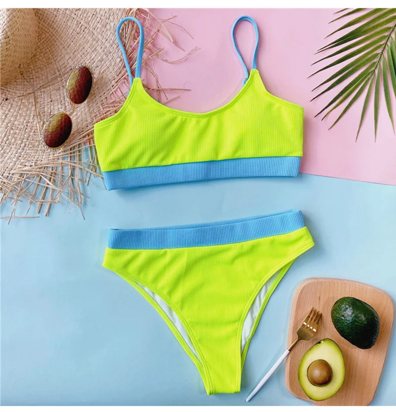 Mosodo-Traje de baño con abertura para mujer, conjunto de Bikini fluorescente sexy, de punto, para playa