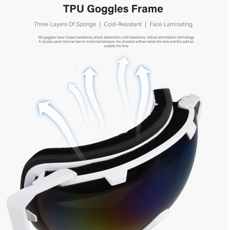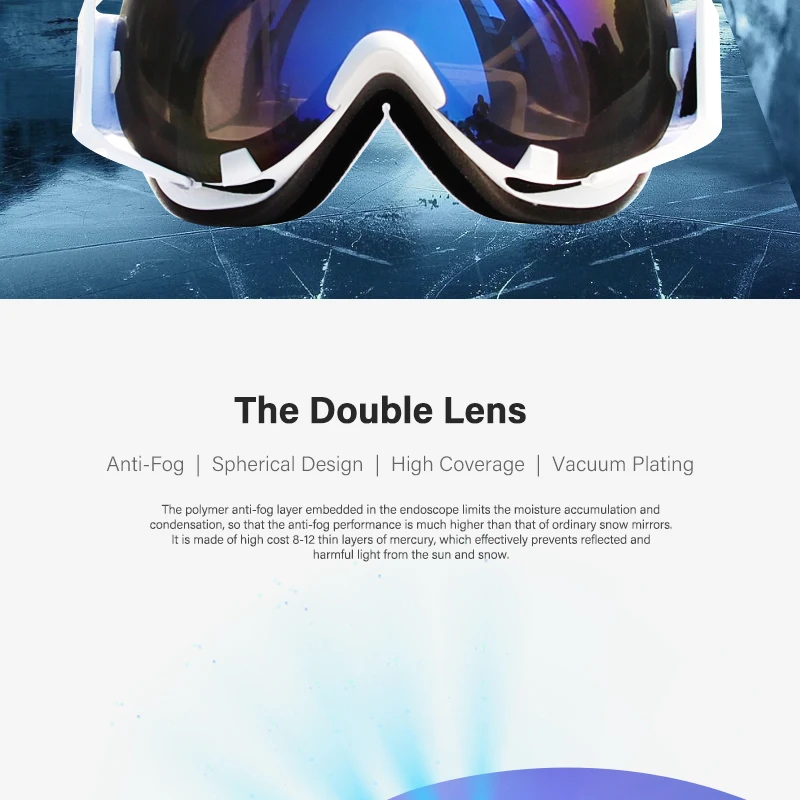 Atributo óptico de la lente:Protección UV400, antivaho, a prueba de explosiones, lente de doble capa, revestimiento de espejo