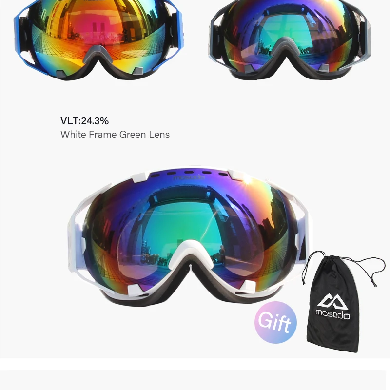 MosodoGafas de esquí esféricas con estilo, gafas de nieve para adultosNavega con un poco de estilo con las gafas de nieve Mosodo. Construidas con tecnología antivaho más una barrera impermeable con ventilación superior, estas gafas cuentan con muchas características prácticas para las pistas, además de comodidad gracias a la espuma de triple capa. Le encantará el aspecto elegante del diseño casi sin montura y las lentes esféricas de gran tamaño. ¡Disfruta de tu deporte de invierno favorito con un par de gafas Mosodo!