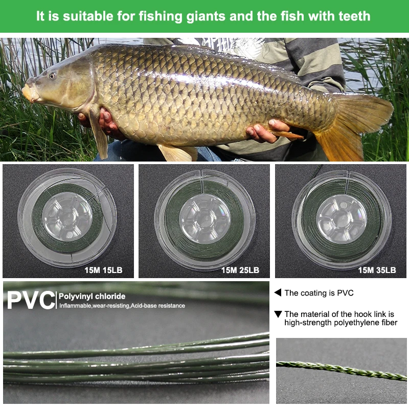 Mosodo revestimiento de pesca de carpa Hooklink 15m gancho verde línea Link 15lb 25lb 35lb fuerte Pull 8 Strand piel trenzada línea de alambre Skinline