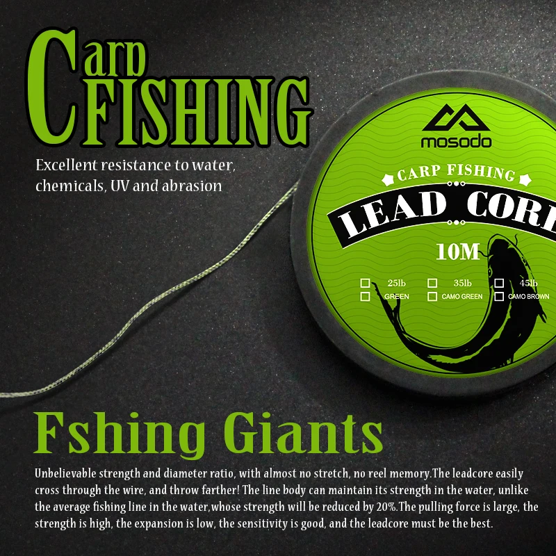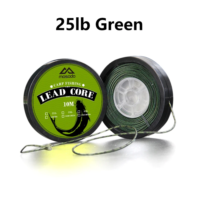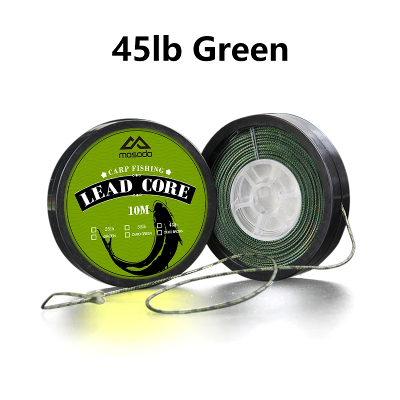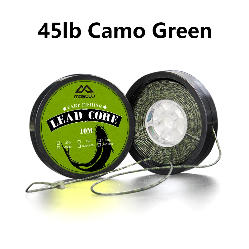 Mosodo-línea líder de pesca de carpa, 10 M, núcleo de plomo verde camuflaje, 25lb, 35lb, 45lb, aparejos de pelo, 12 hebras, cables trenzados, 10 metros