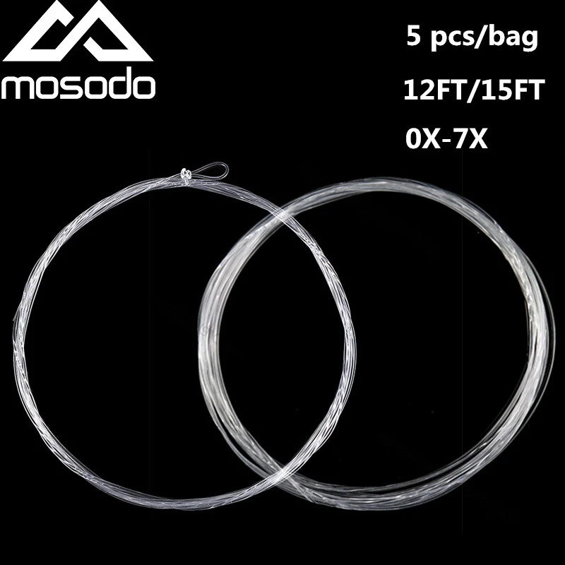 Mosodo 5 piezas 12FT 15FT línea de guía cónica bucle unido 0X 1X 2X 3X 4X 5X 6X 7X guía de pesca cónica línea de Nylon