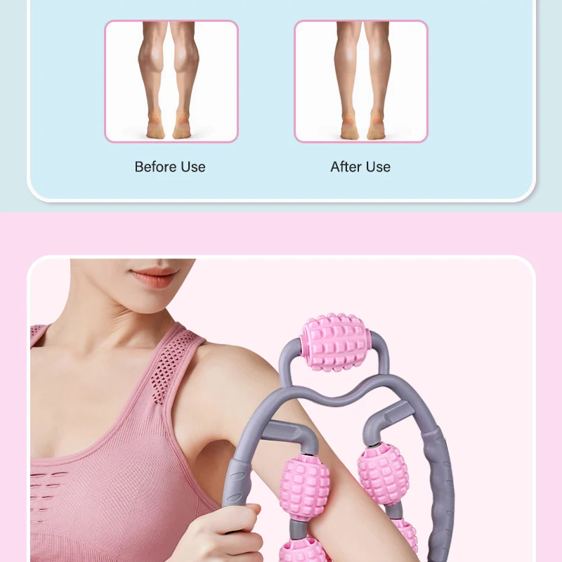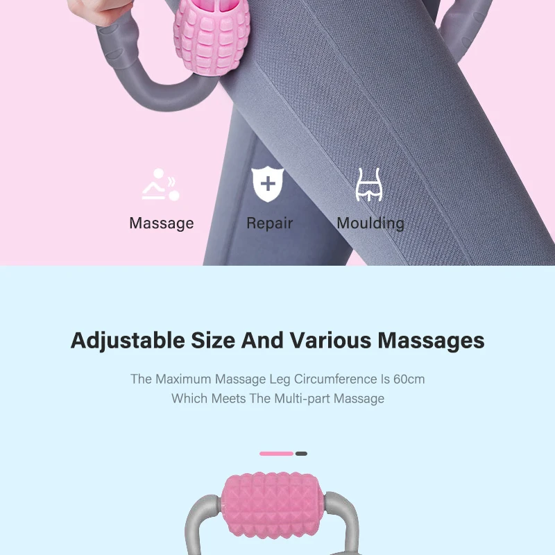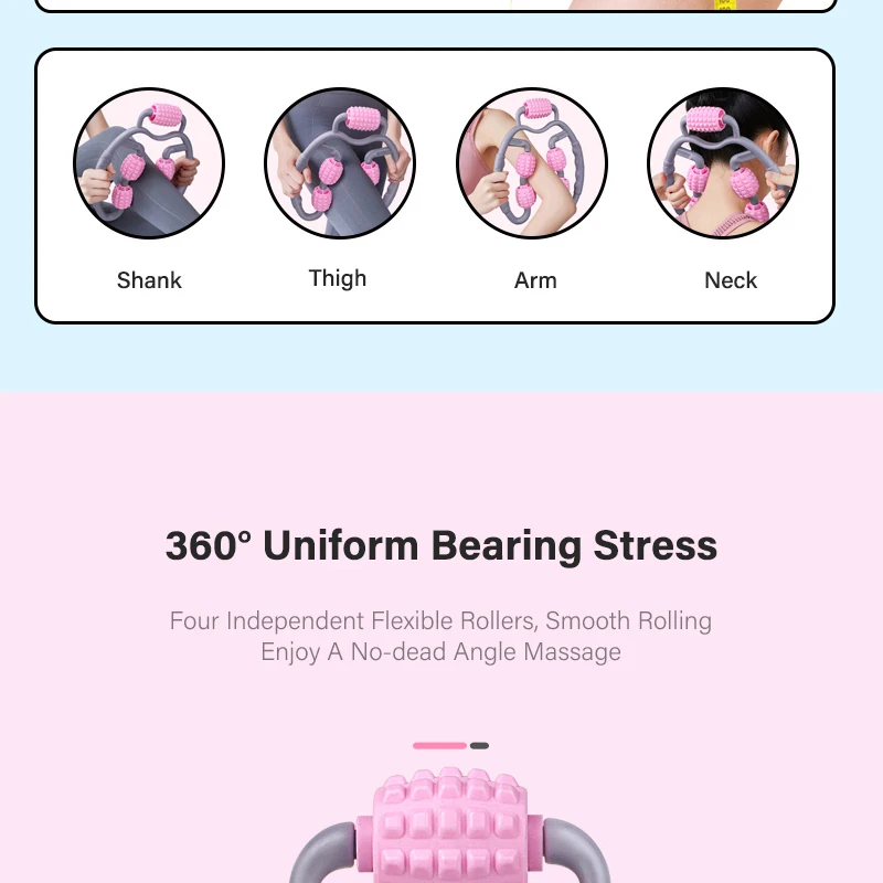 Menos esfuerzo, más efecto. Nuestro masajeador de piernas abraza ambos lados de sus piernas, cubriendo más área más rápido. Usa las asas dobles para aplicar la cantidad ideal de compresión, dejando que los cuatro rodillos texturizados proporcionen un masaje profundo mientras se mueven. La construcción sólida y resistente garantiza una distribución constante de la presión.