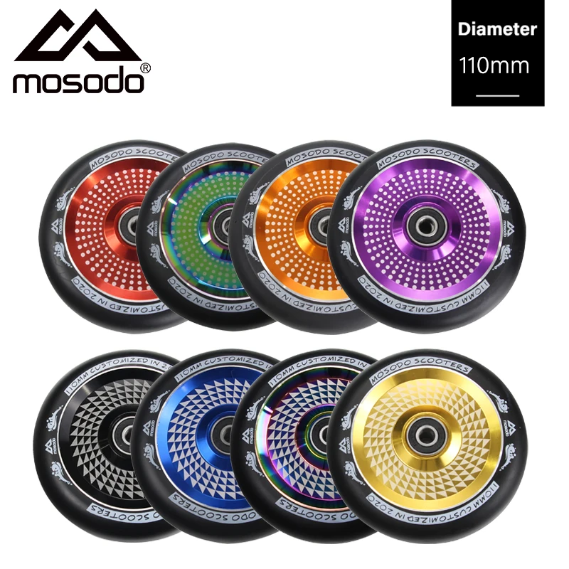 The all new AIR Wheels fromMosodoare one of the lightest wheels on the market!Weighing an ultra light 230grams with bearings the hollowcore technology means you get the strength of twin plate arches with the lightness of air in the inner chamber.Matched with the classic high quality Mosodo PU formula that is known for it's speed and strength so you know you are getting a premium wheel!Professionally pre-fitted with the super fast Mosodo Abec 9 Bearings the new AIR wheels give you high quality and value for money!Specification:Color:Black, Yellow, Orange, Blue, Red, Green, PurpleSize:Diameter 110mm(4.3inch), width 24mm(0.94inch)Core:6063T6 AluminumPU:High-rebound PolyurethaneBearing:ABEC-9Hardness:88A UrethaneResilience:85%Package:2 x wheelNet weight:230g/ wheel approx