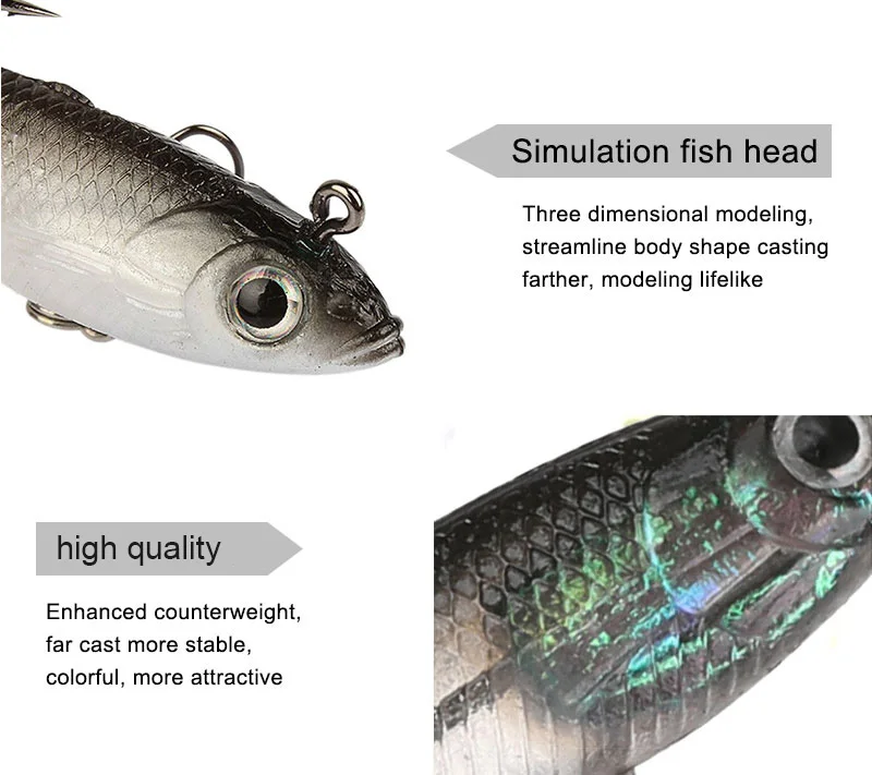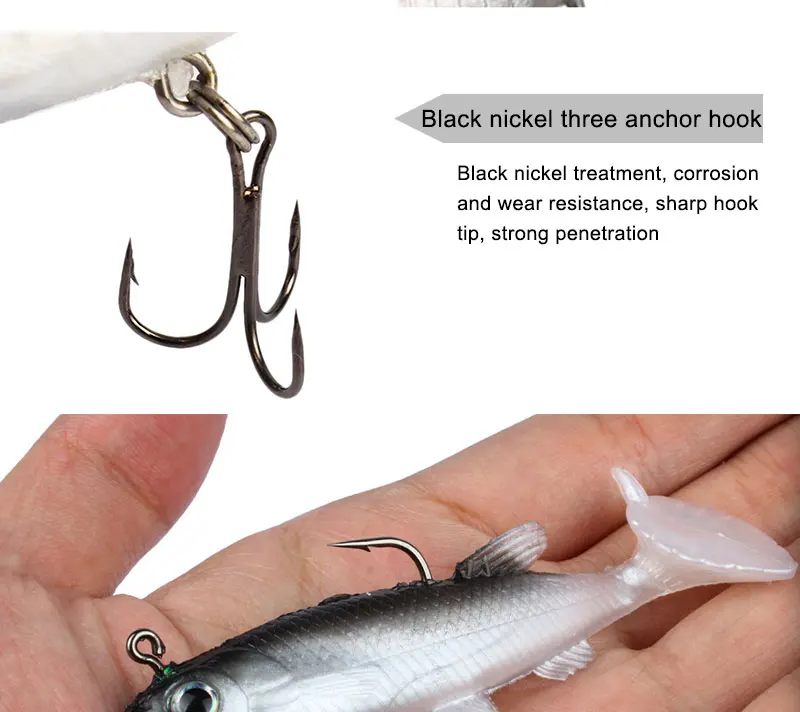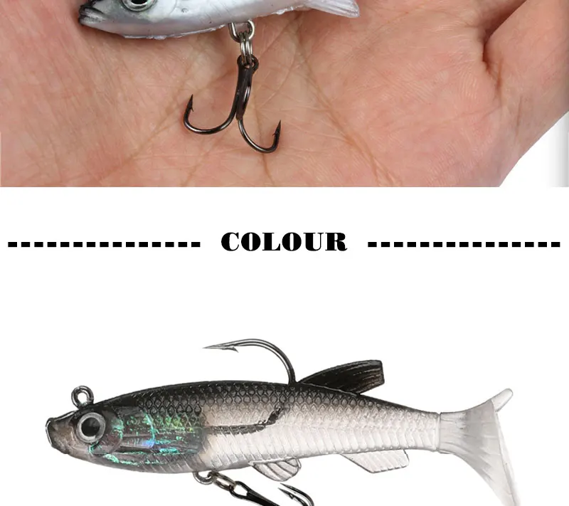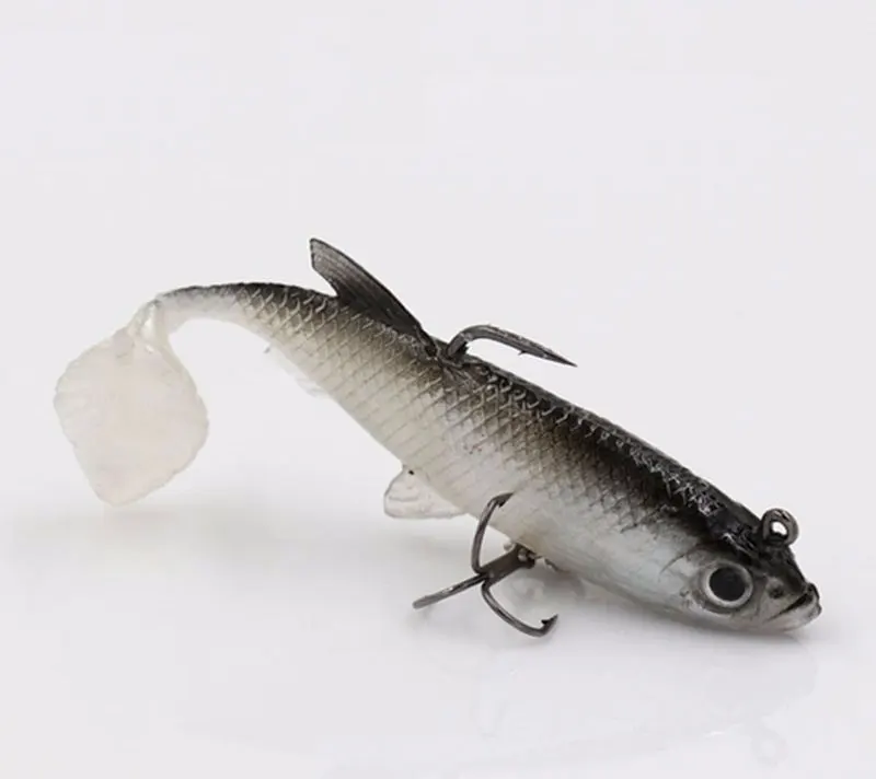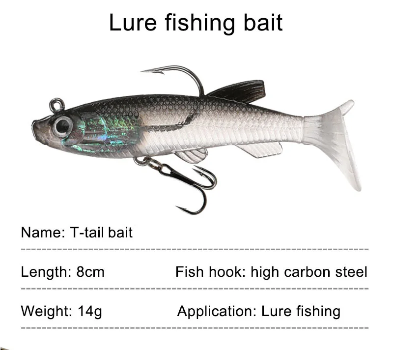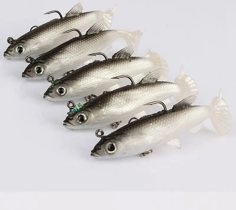 Piezas de MosodoSeñuelo de cola T cebo suave con anzuelos de pesca agudos cabeza de plantilla pesada de silicona Wobbler 5 piezas Jigging Minnow accesorios de aparejos